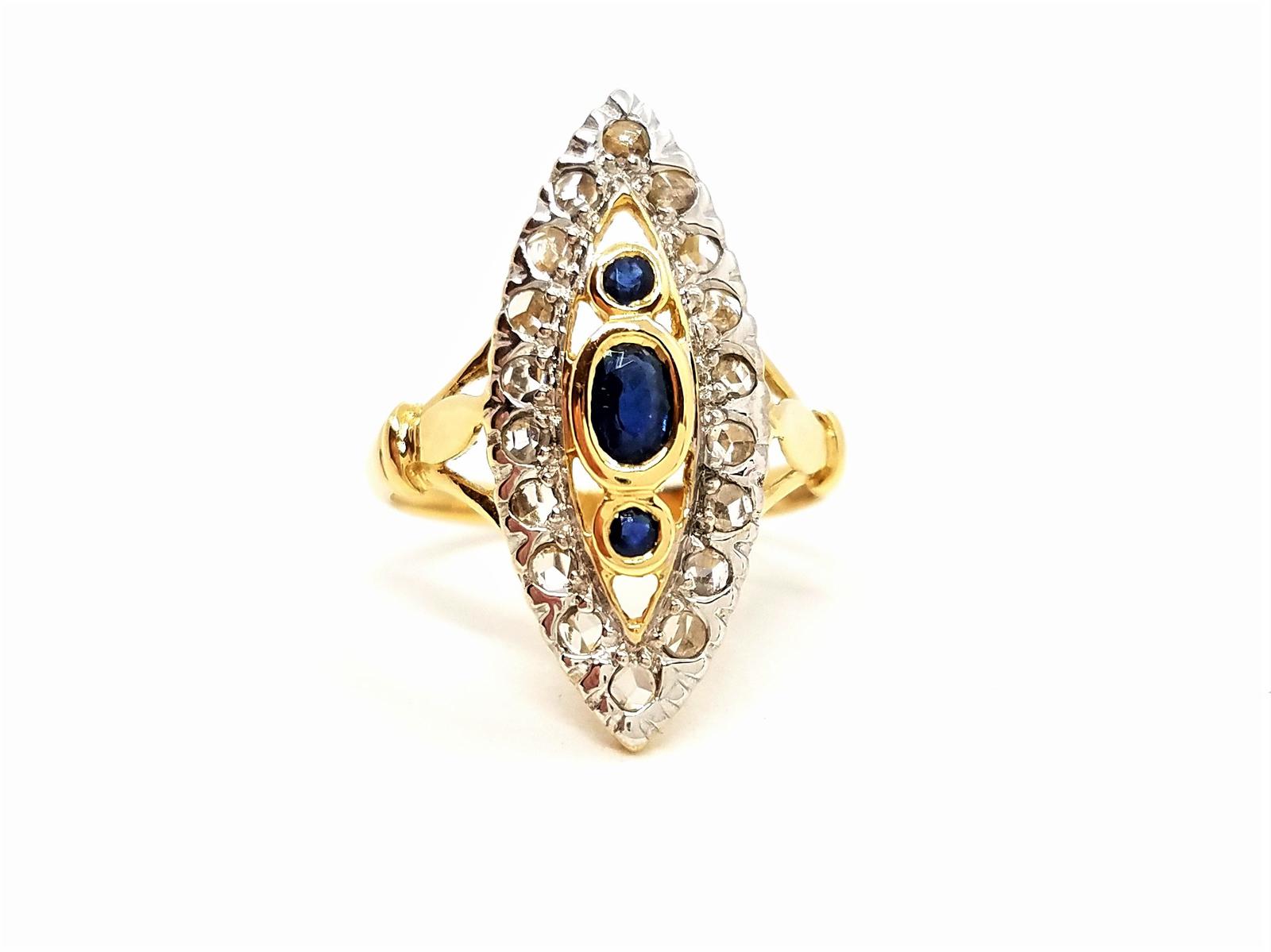 Bague Art déco Or jaune, Or blanc Diamant, Saphir