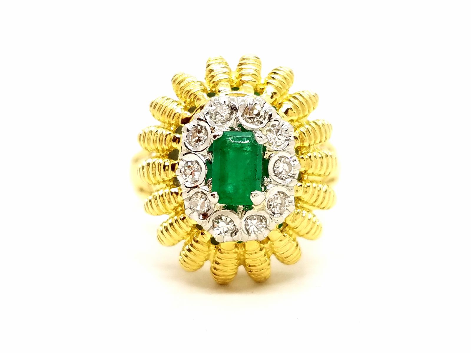 Bague Art déco Or jaune, Or blanc Emeraude, Diamant