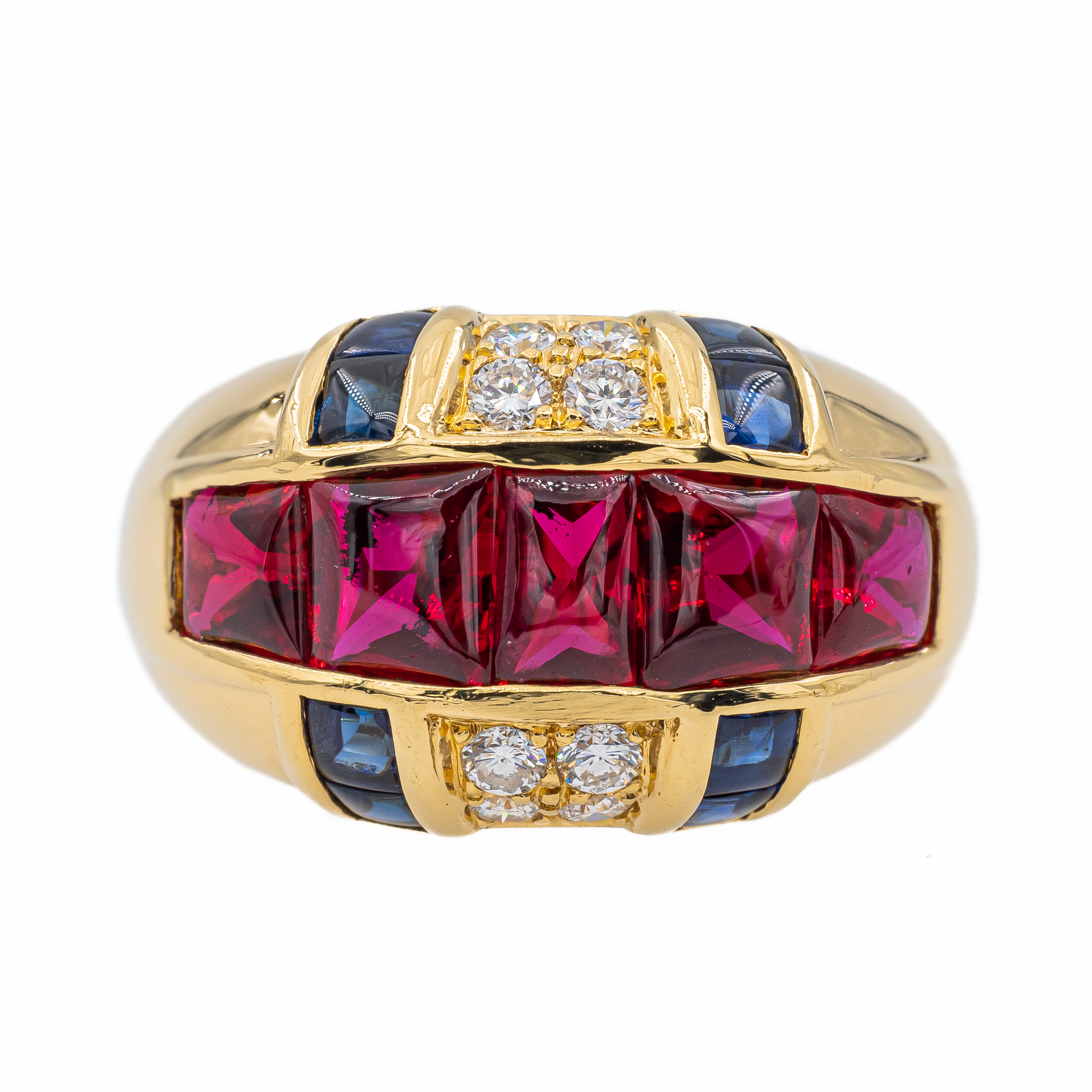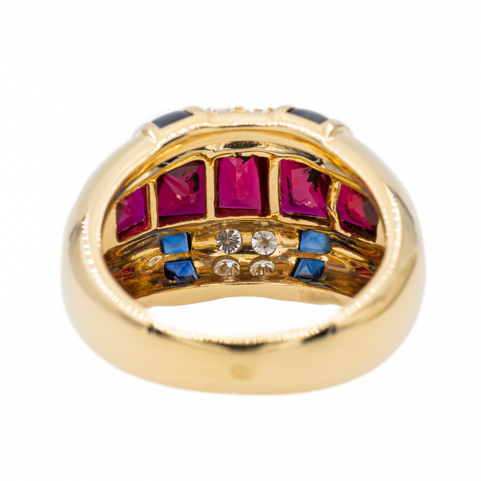 Bague Cocktail Or jaune Rubis, Saphir, Diamant
