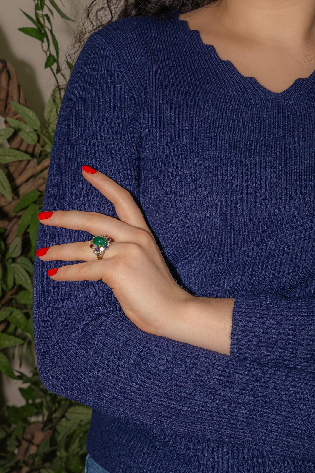 Bague Cocktail Or jaune Emeraude, Corindon, Diamant