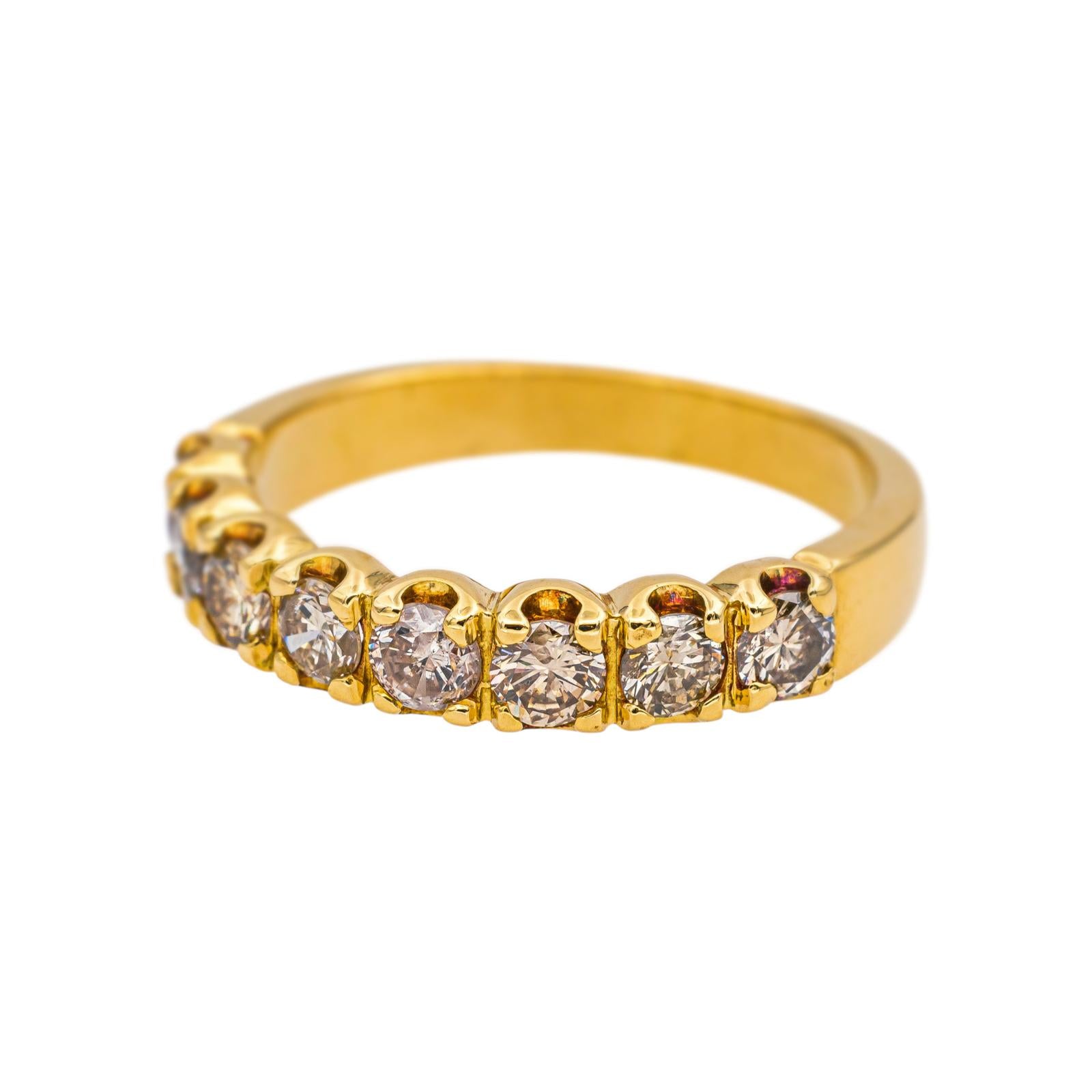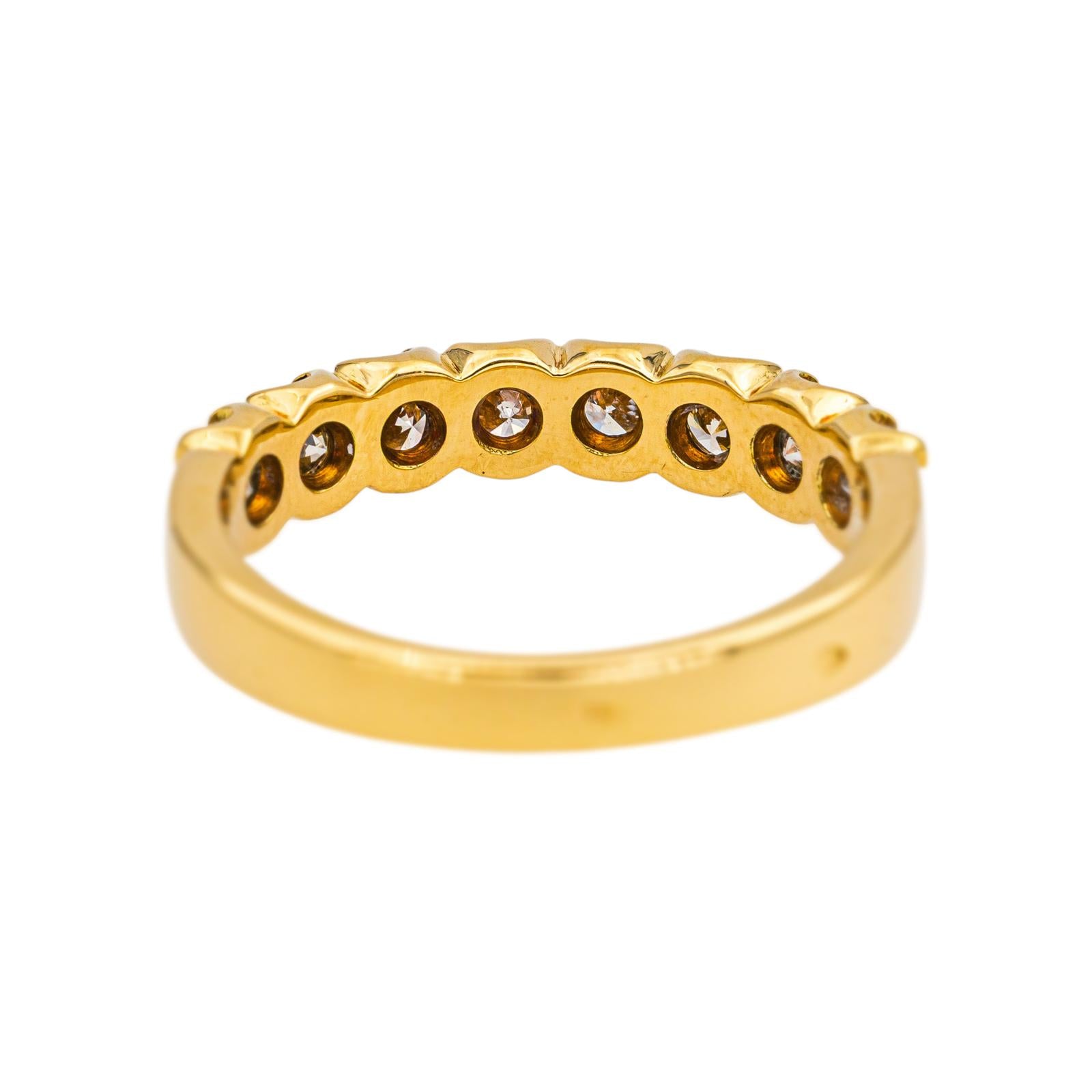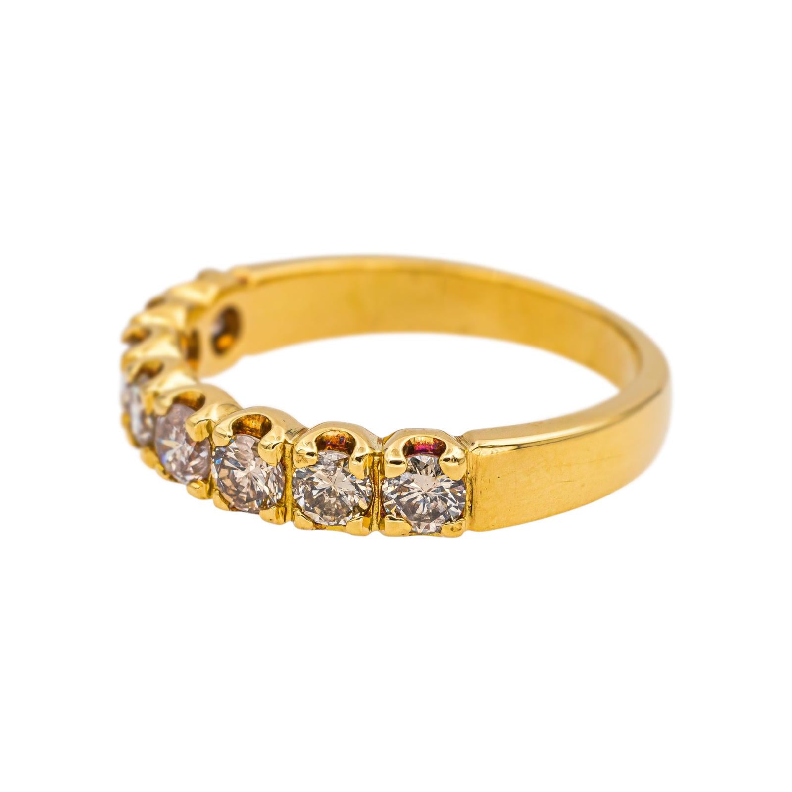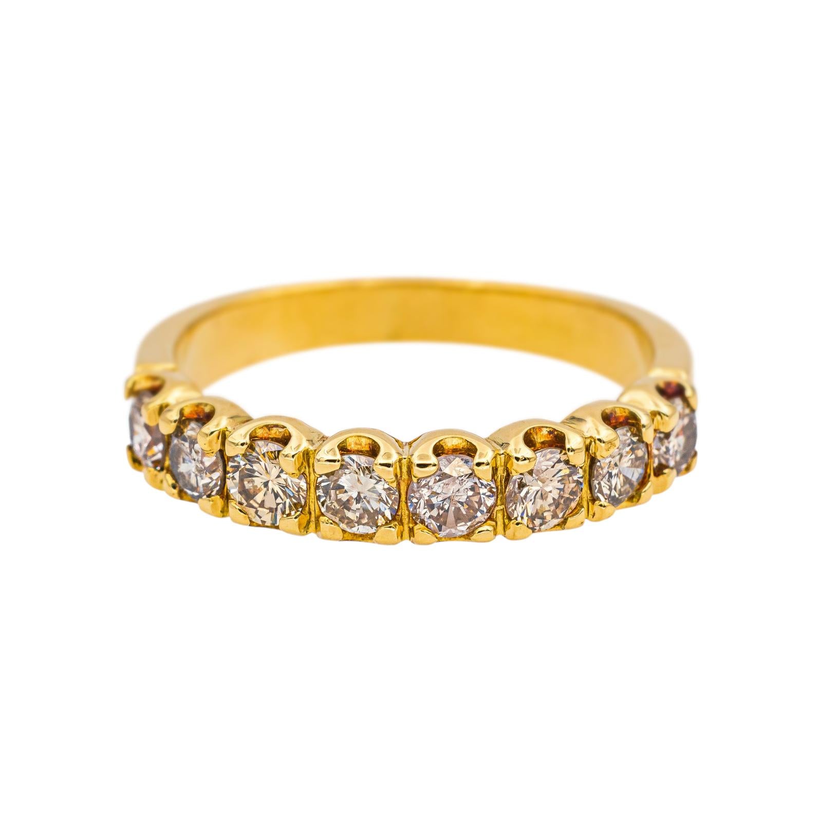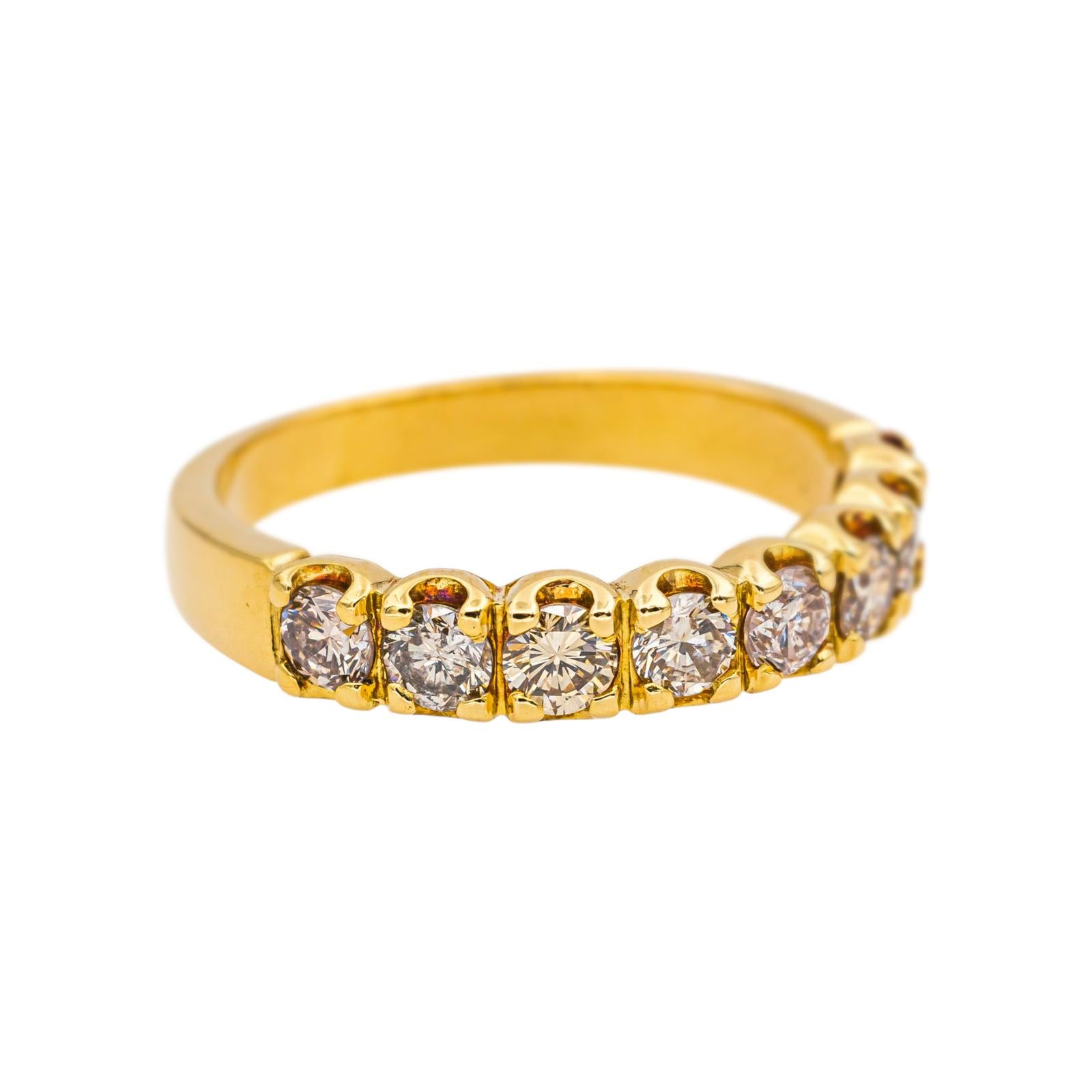 Demi-alliance en or jaune 750 millièmes (18 carats), sertie de 8 diamants taille brillant environ H-VS, d'environ 0,10 ct chacun, poids total diamants : environ 0,80 ct, largeur sur le dessus : 0,41 cm, tour de doigt : 55, poids total : 4,41 g, poinçon tête d'aigle, excellent état