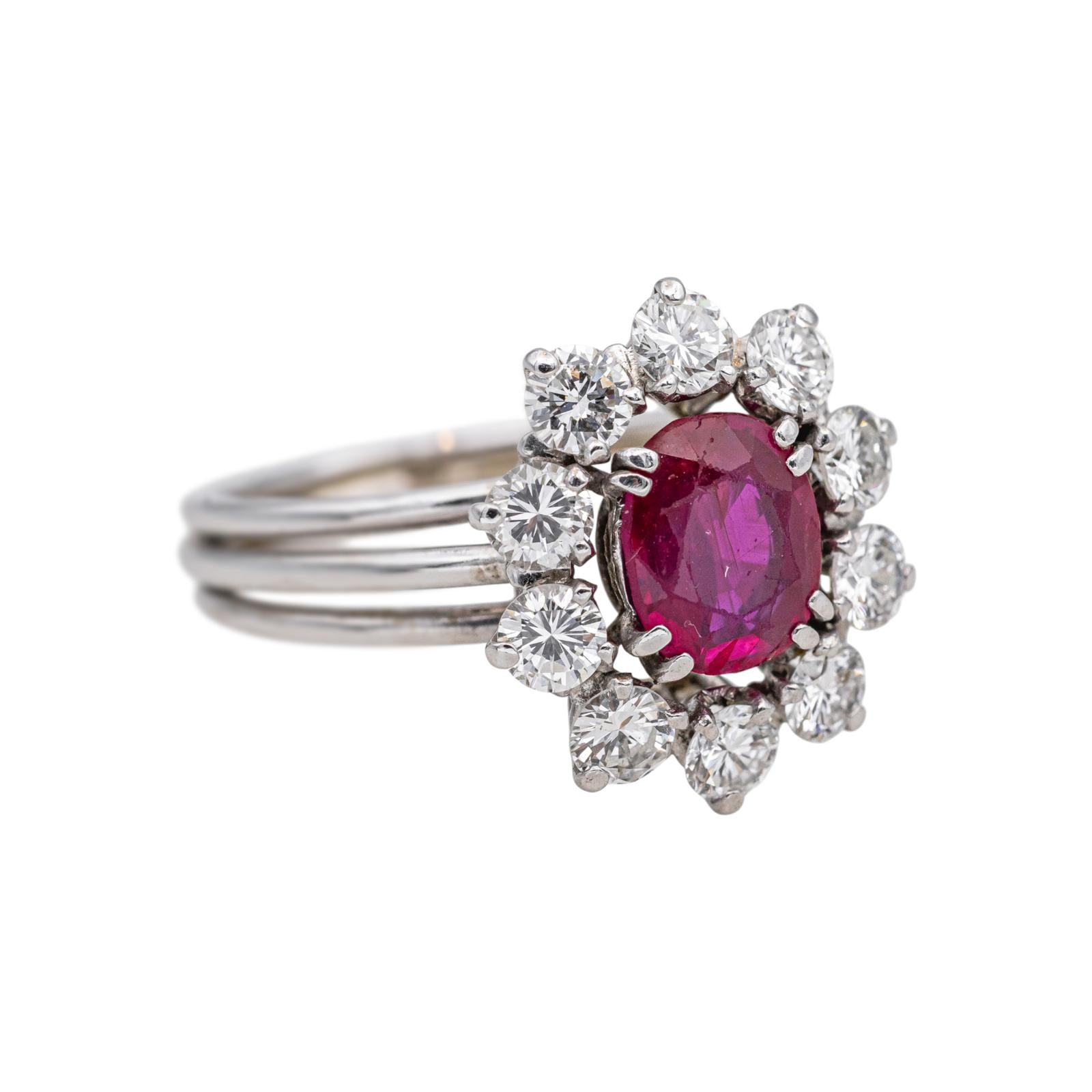Bague Marguerite Or blanc Rubis, Diamant