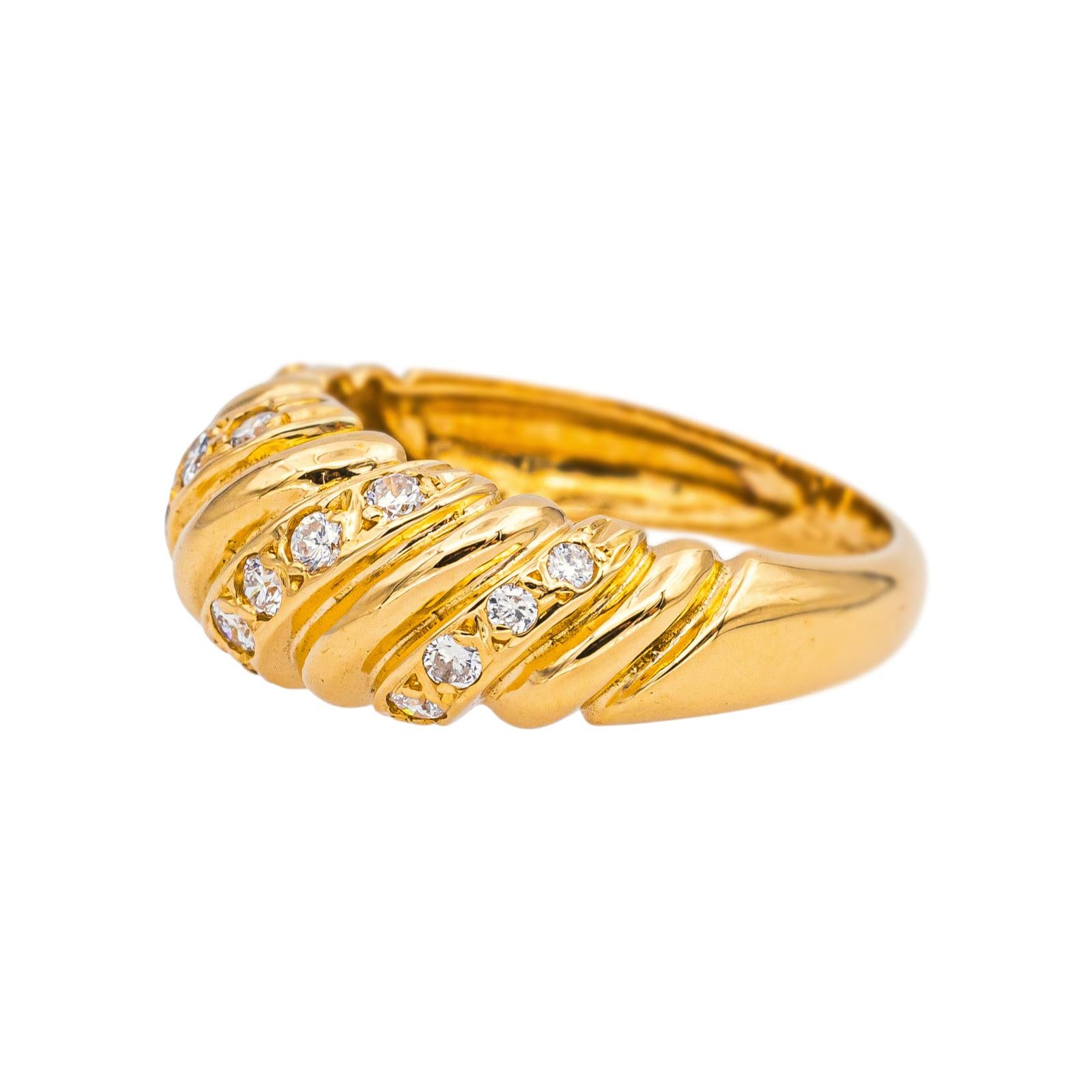 Bague en or jaune 750 millièmes (18 carats), pavée de diamants, 18 diamants taille brillant, environ H-SI, d'un poids total d'environ 0,34 ct, (chaque diamant d'un poids d'environ 0,019 ct), largeur sur le dessus : 0,82 cm, tour de doigt : 52,5, poids total : 4,07 g, poinçon tête d'aigle, excellent état