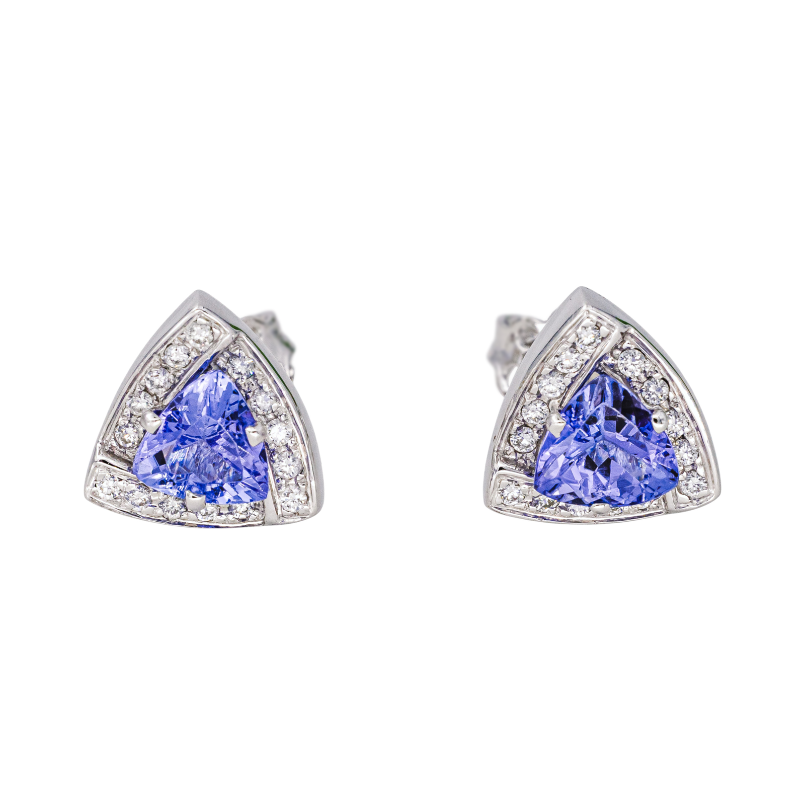 Boucles d'oreilles Puces Or blanc Tanzanite, Diamant