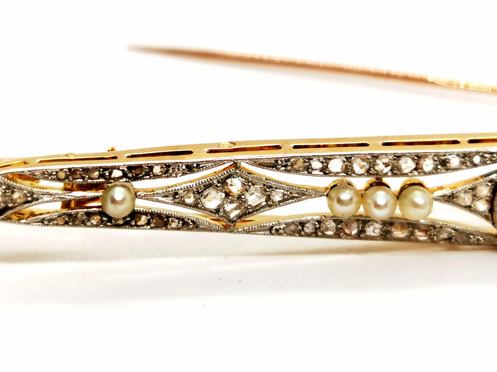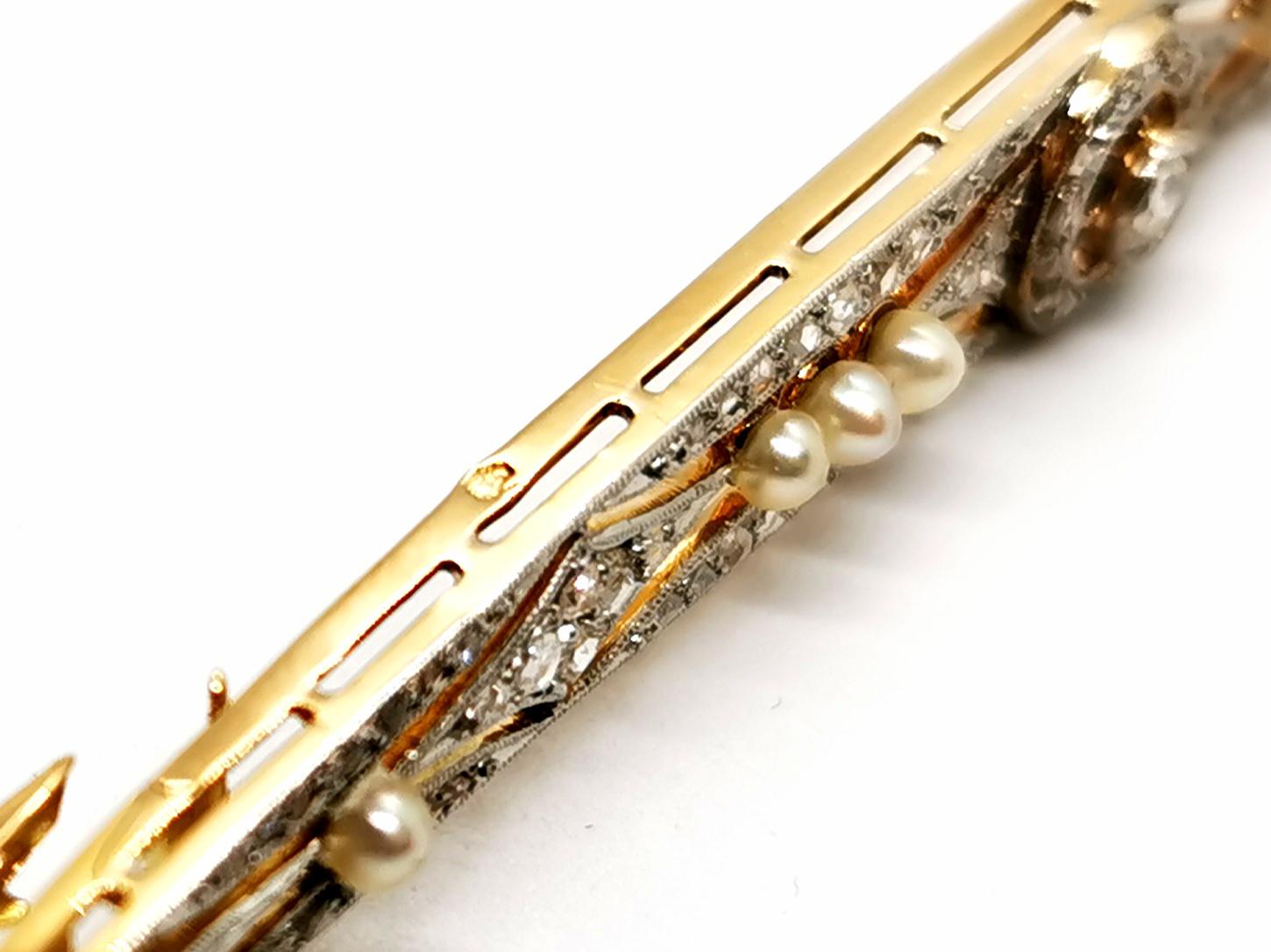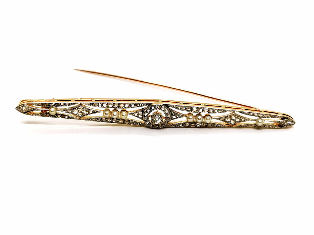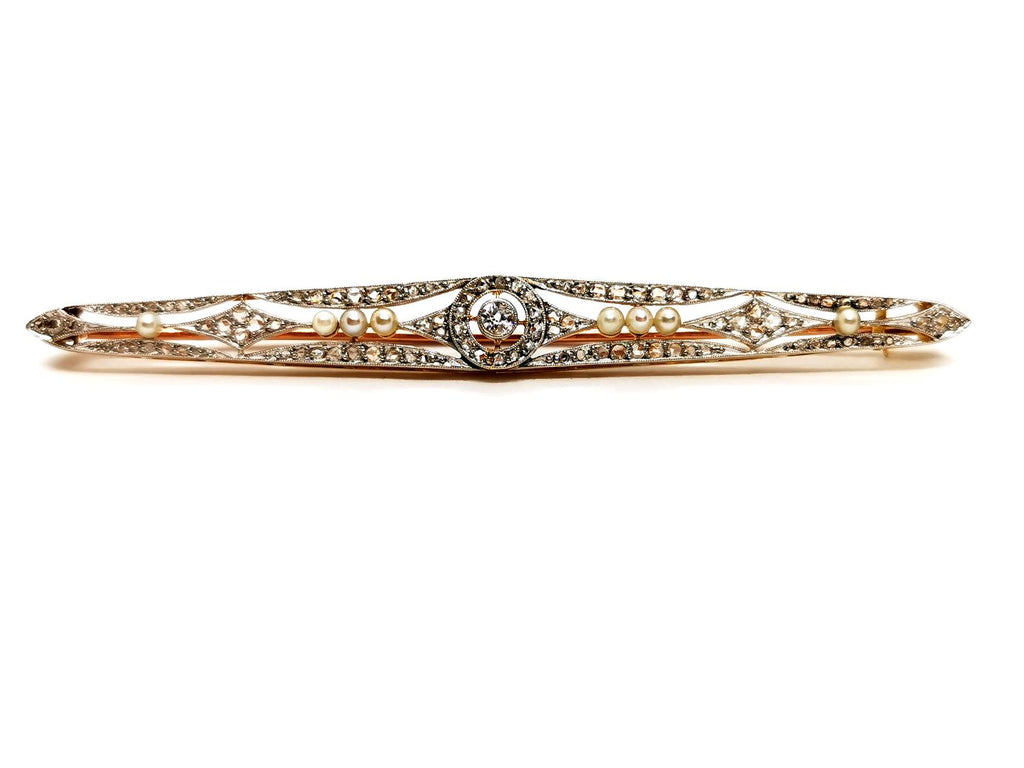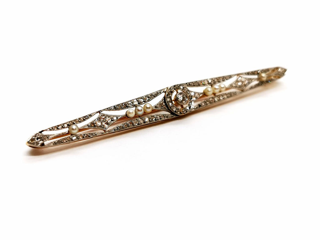 Broche Art déco Or jaune, Or blanc, Or rose Diamant, Perle