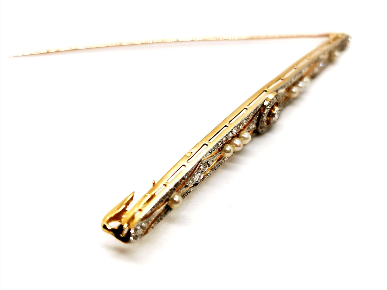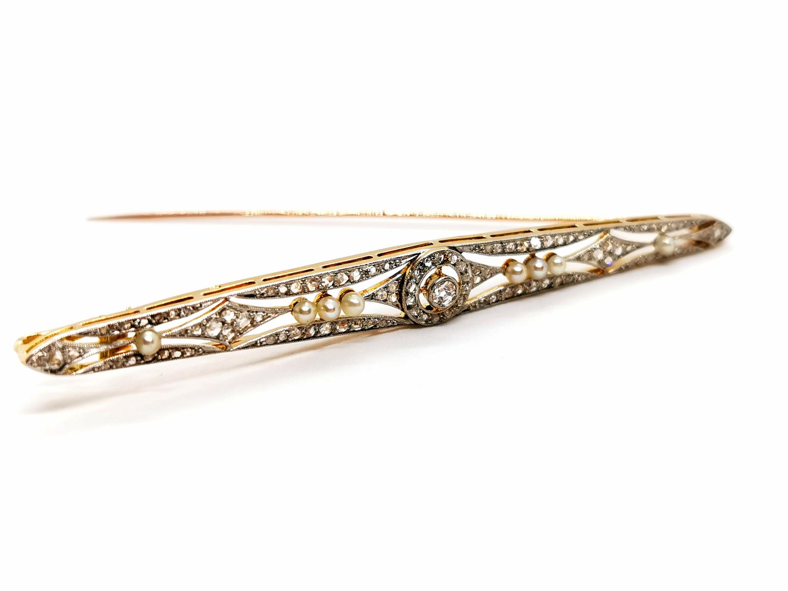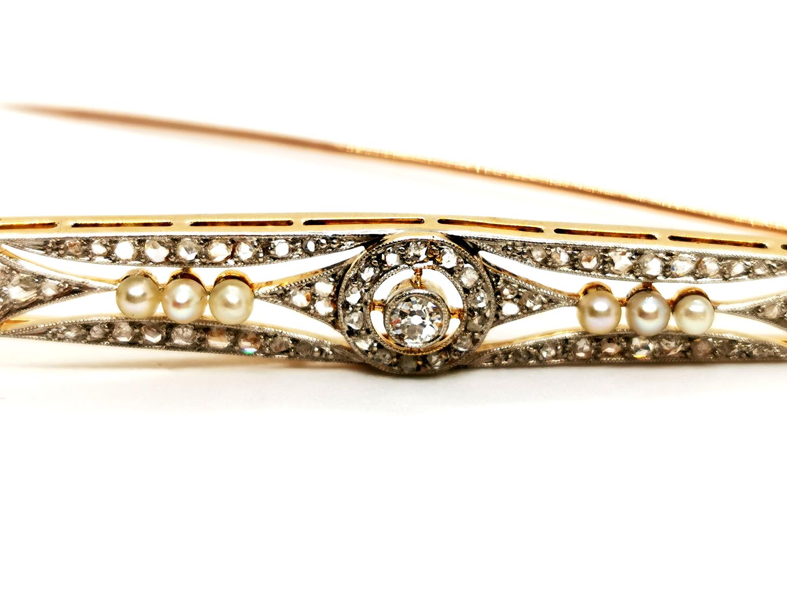 Broche Art déco Or jaune, Or blanc, Or rose Diamant, Perle