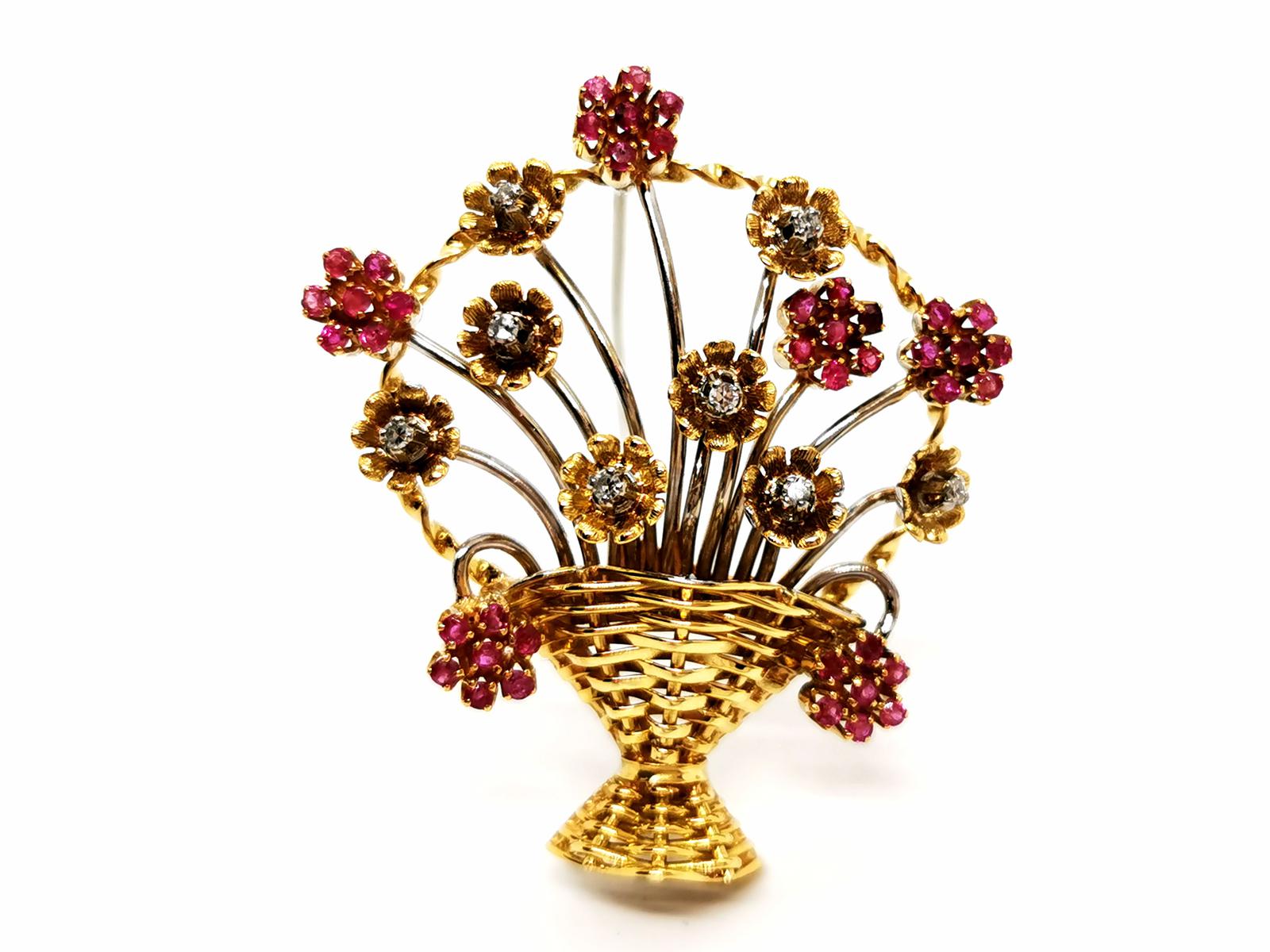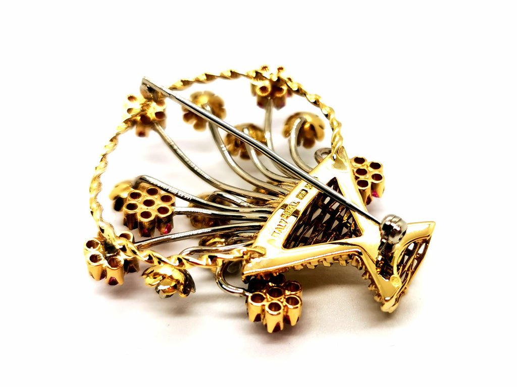 Broche Fleur Or jaune, Or blanc Rubis, Diamant