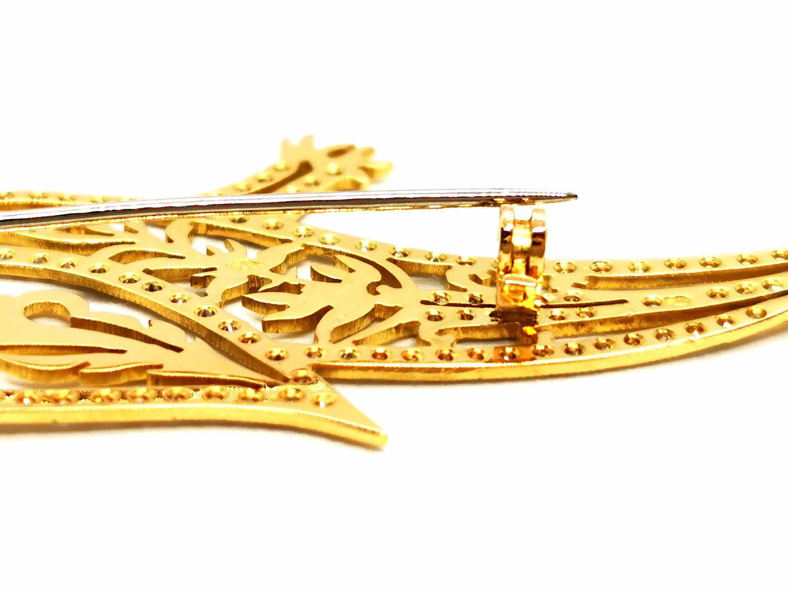 Broche Paon Or jaune Diamant, Emeraude