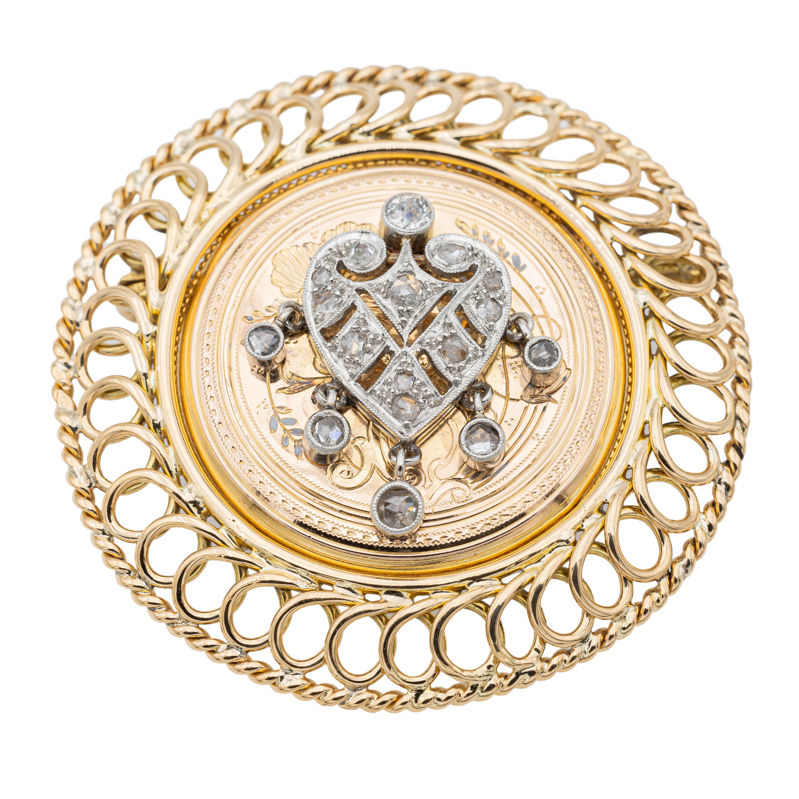 Pendentif Broche Or rose, Platine Diamant