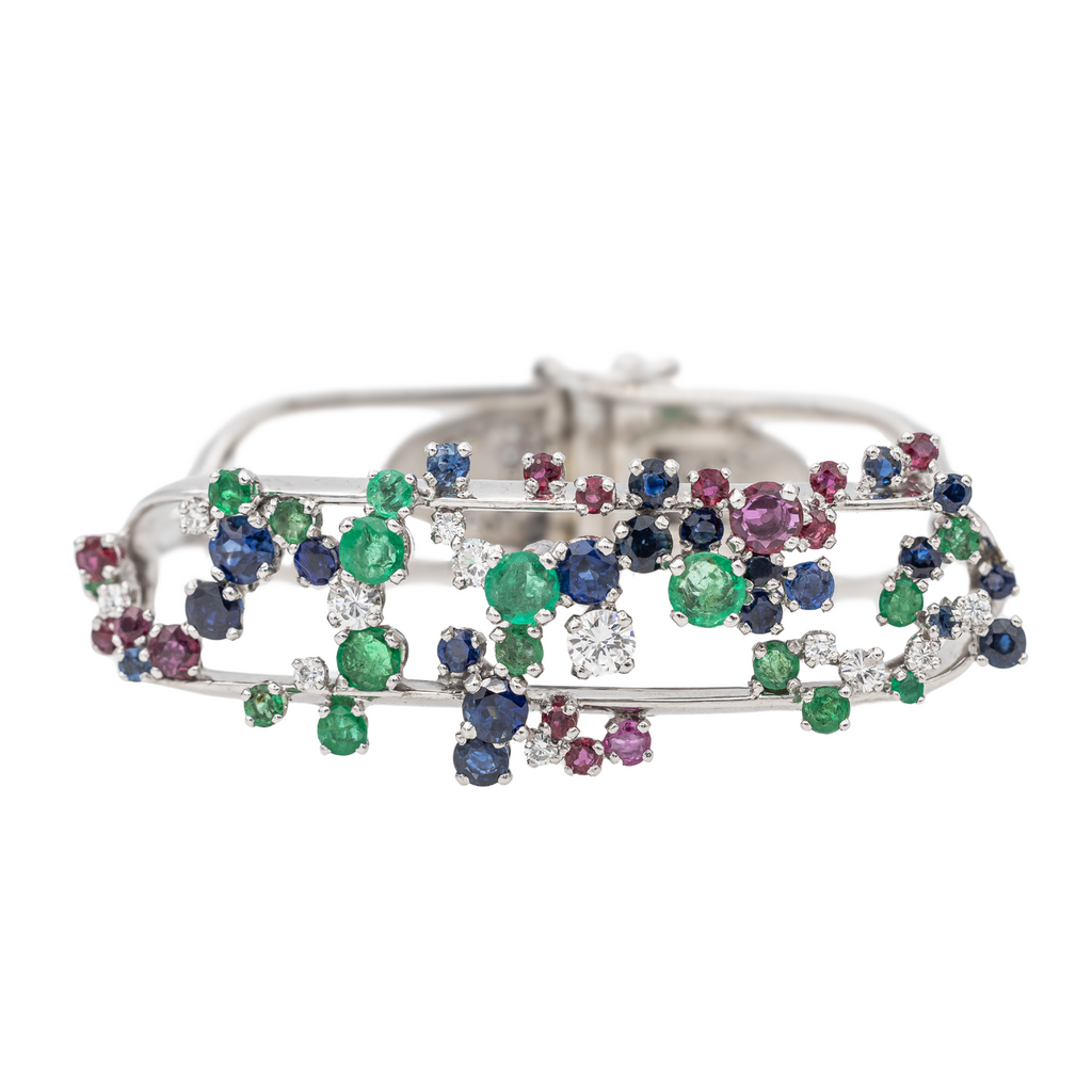 Jean vendôme Bracelet Or blanc, Platine Saphir, Emeraude, Rubis