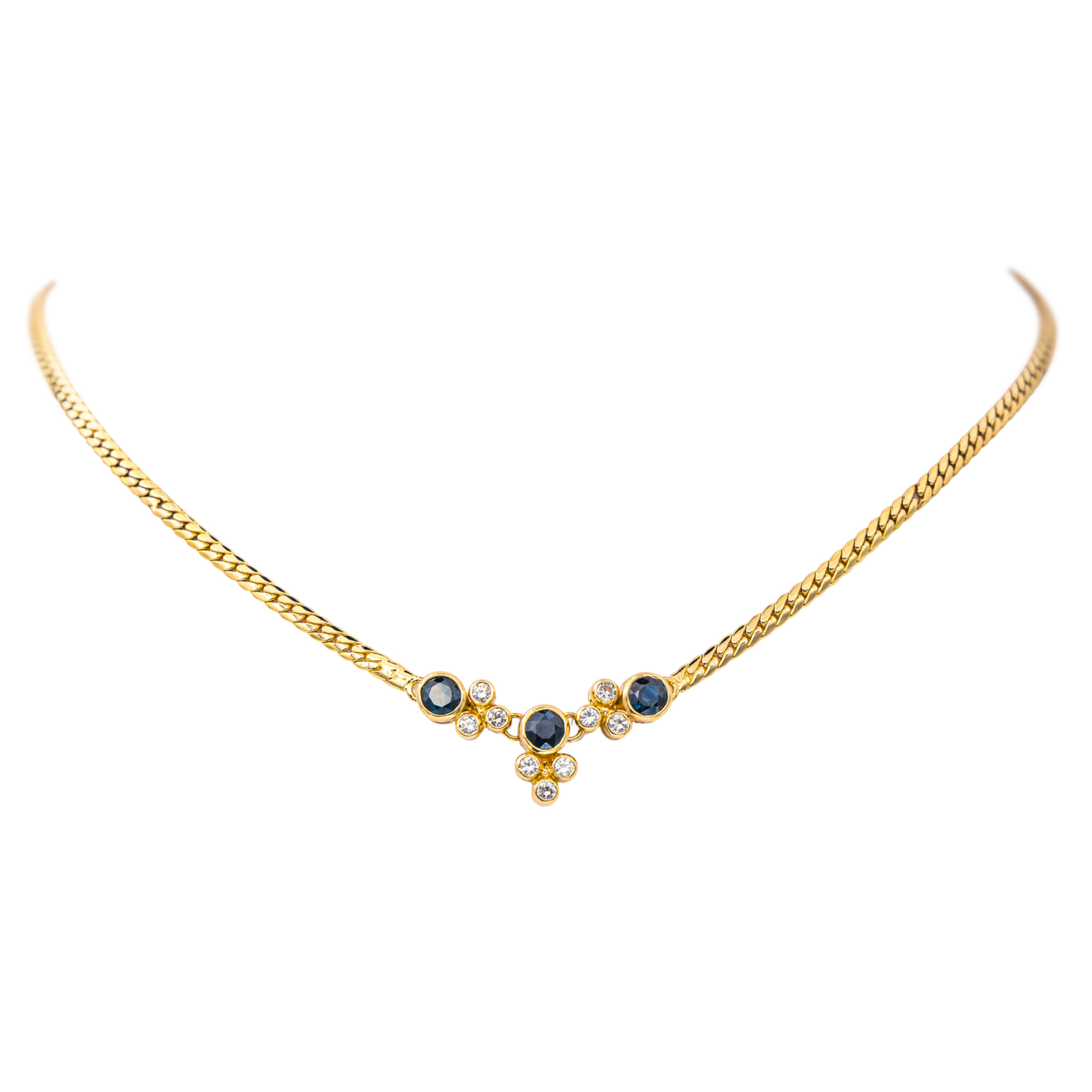 Collier Maille Anglaise Or jaune Saphir, Diamant