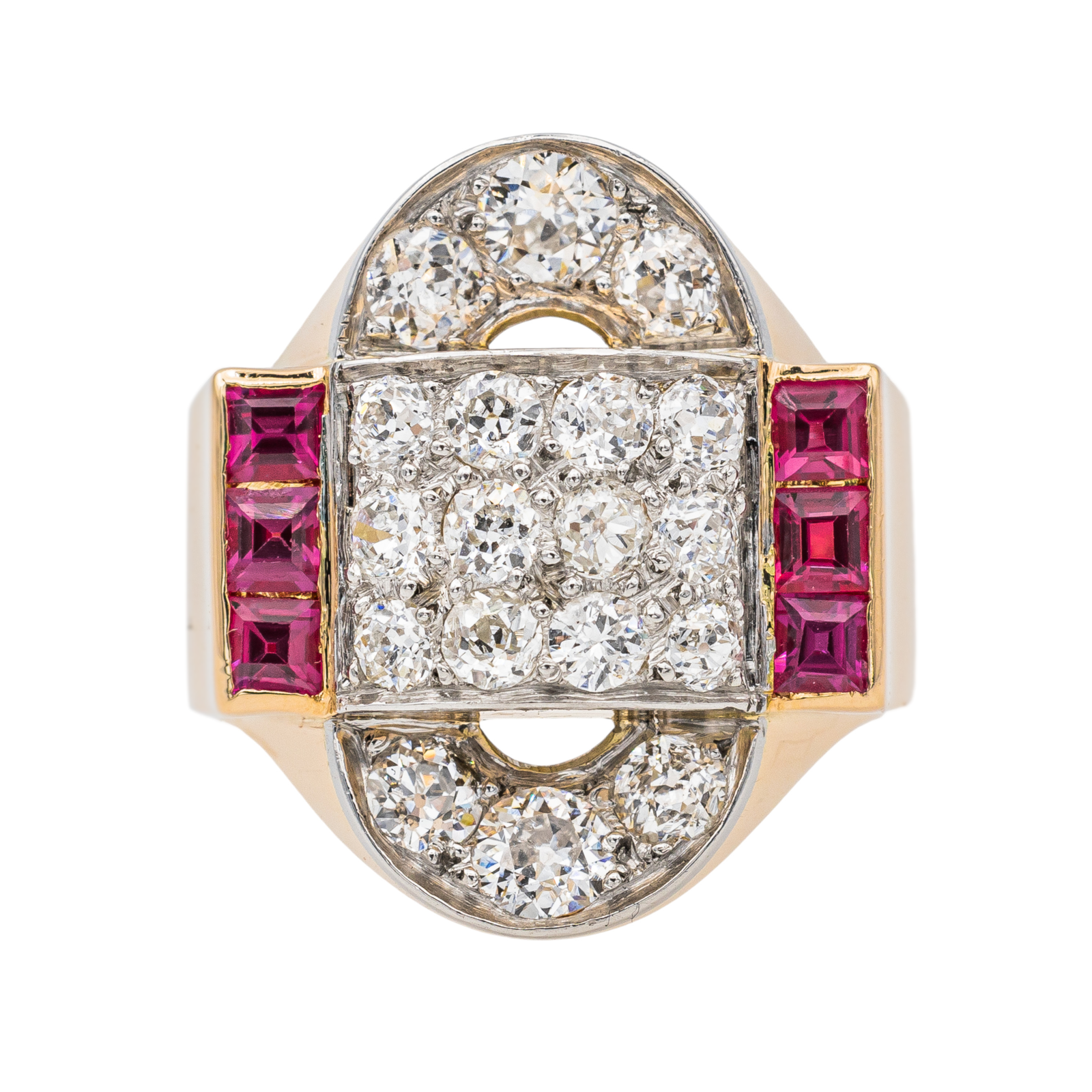 Bague Tank Or jaune, Platine Diamant, Rubis synthétique