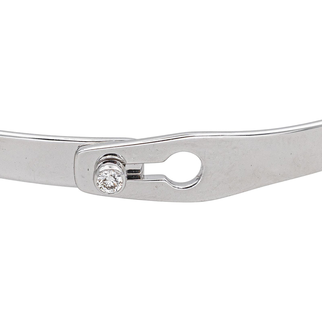 Bracelet jonc signé de la Maison Dinh Van en or blanc 750 millièmes (18 carats), modèle Serrure, ouvrant, serti d'un diamant taille brillant, environ G-VS, d'un poids d'environ 0,04 ct, diamètre intérieur : 16,00 cm, largeur : 0,40 cm, longueur : 5,84 cm, poids total : 9,50 g, poinçon tête d'aigle, vendu avec écrin d’origine et d’époque, excellent état
