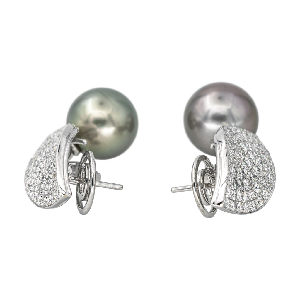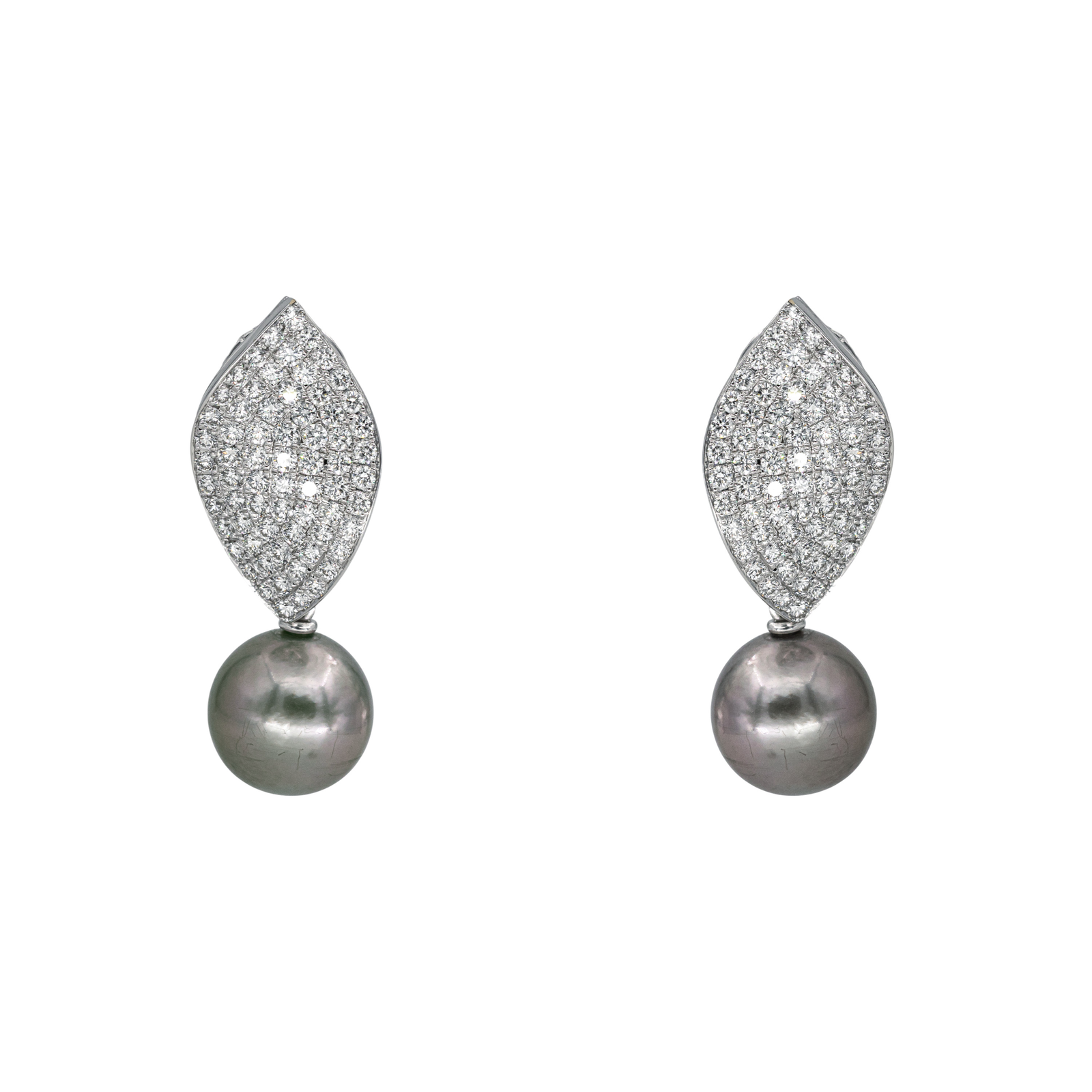 Boucles d'oreilles Pendantes Or blanc Diamant, Perle de tahiti