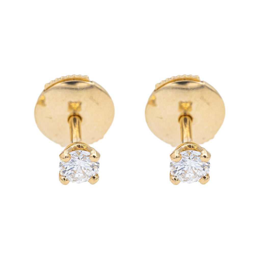 Boucles d’oreilles puces en or jaune 750 millièmes (18 carats) testé, chacune sertie d’un diamant taille brillant, estimé H/VVS, environ 0,15 ct, Poids total estimés des diamants: 0,30 ct, dimensions: 0,40 cm x 0,40 cm, poids total: 1,38 g, excellent état