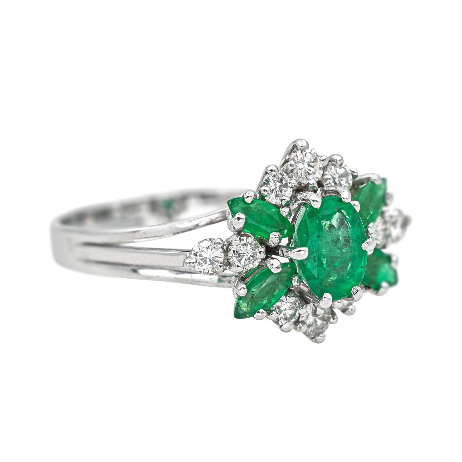 Bague Or blanc Emeraude, Diamant