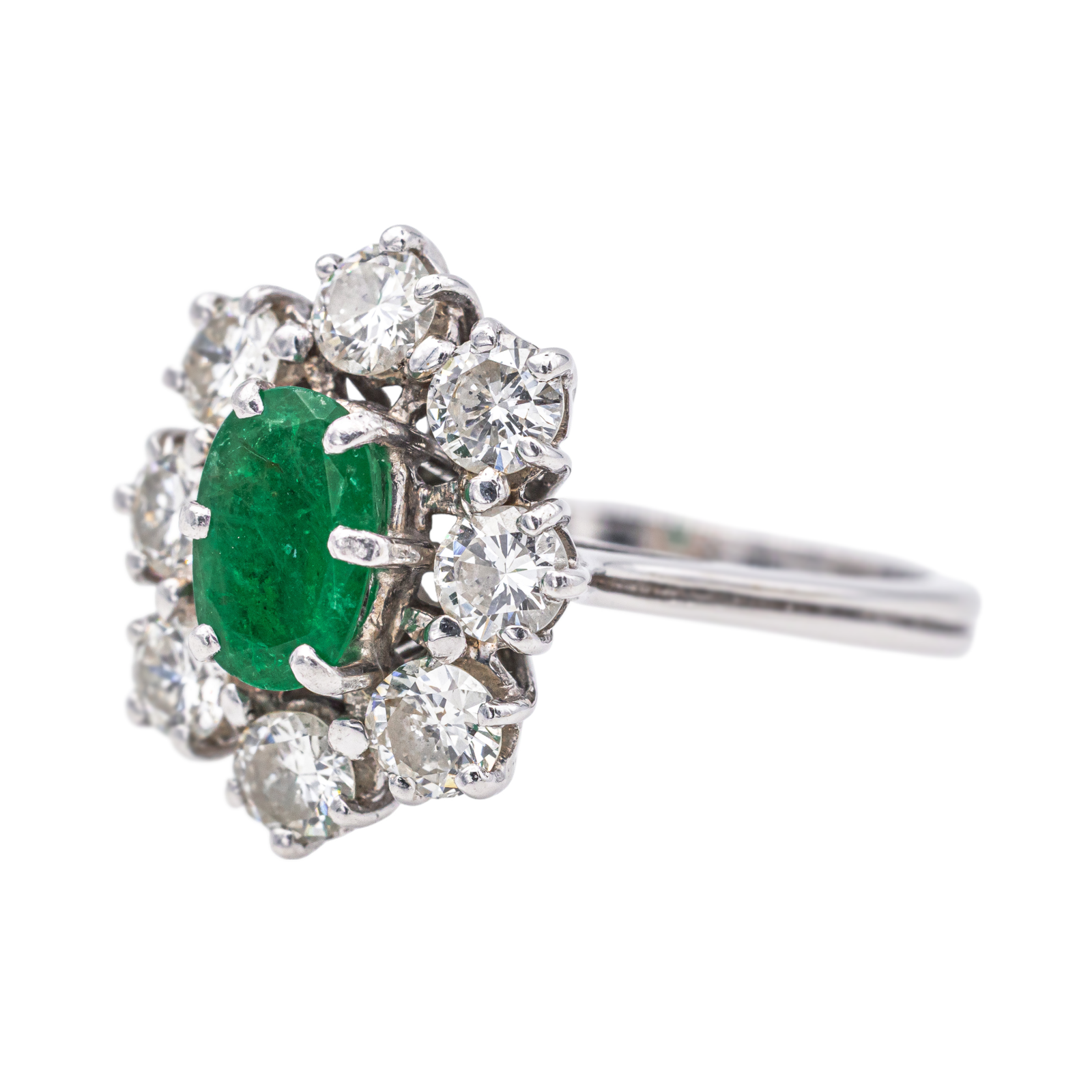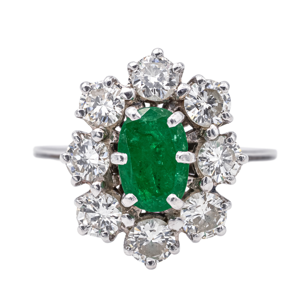 Bague Pompadour Or blanc, Platine Emeraude, Diamant