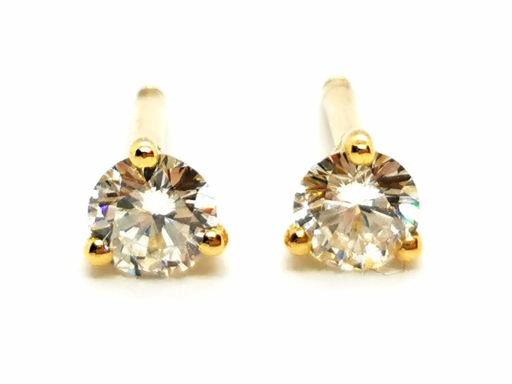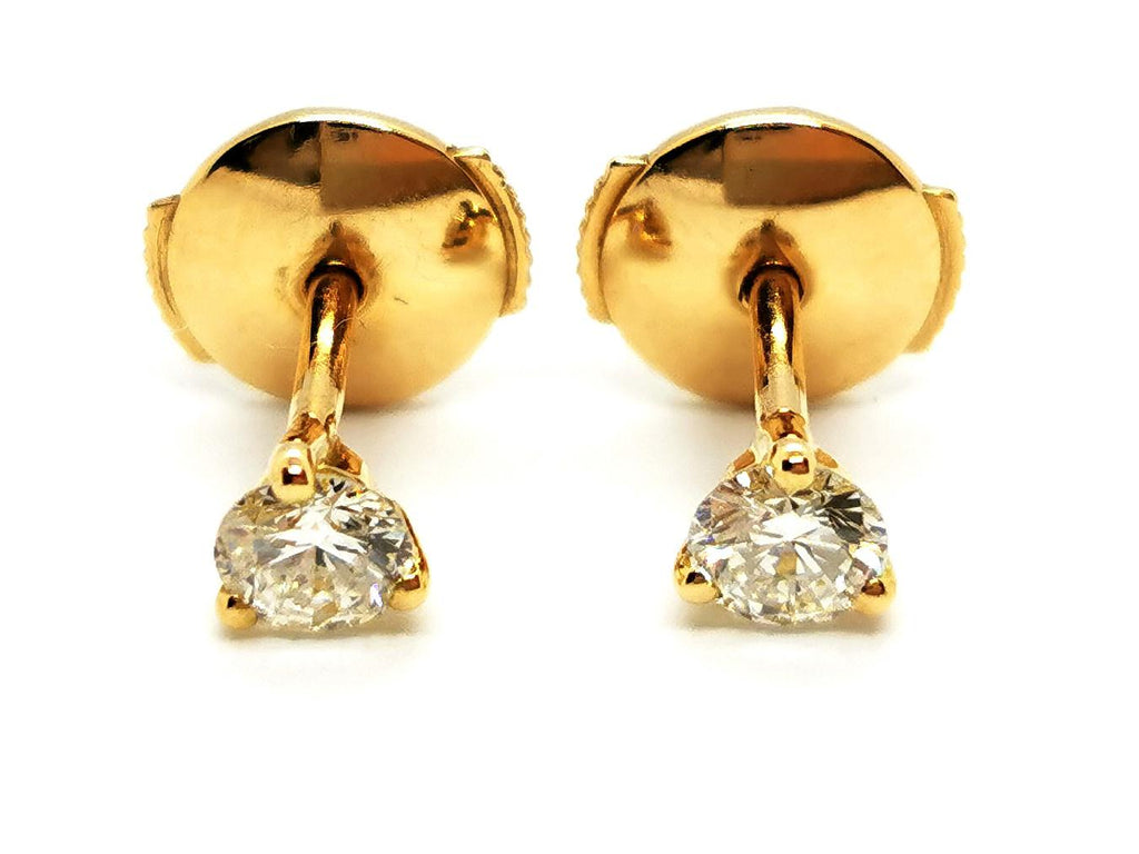 Boucles d'oreilles puces diamants, en or jaune 750 millièmes (18 carats) testé, serties de deux diamants, taille brillant, environ G/VVS, d'environ 0,21 ct chacun, poids total diamants: environ 0,42 ct, serti 3 griffes, diamètre: 0,43 cm x 0,43 cm, fermoir alpa, excellent état