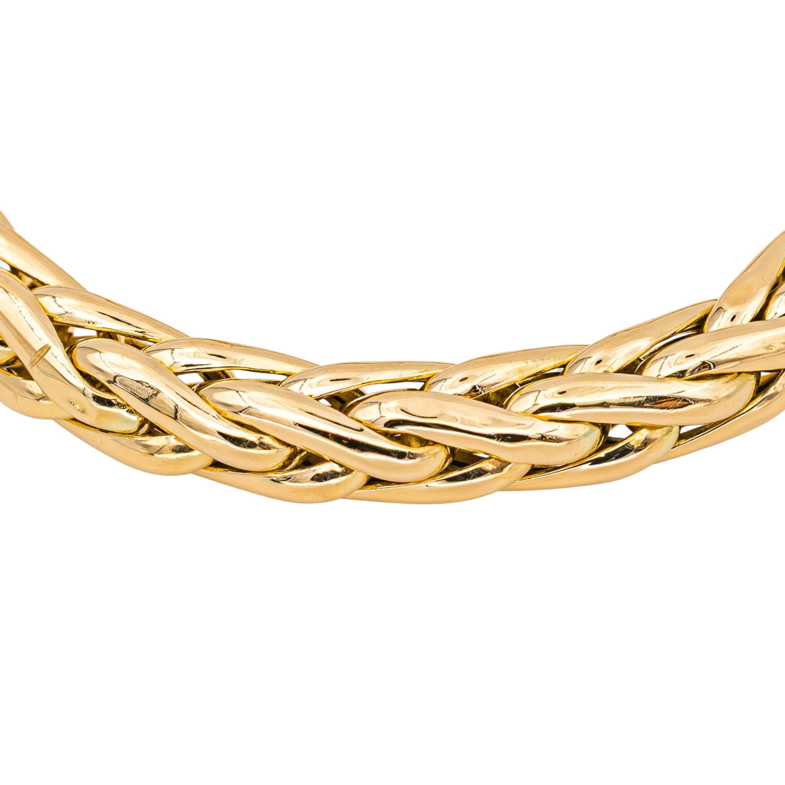 Bracelet en or jaune 750 millièmes (18 carats), maille palmier, longueur : 19,50 cm, largeur : 0,50 cm, poids total : 18,52 g, poinçon tête d’aigle, excellent état