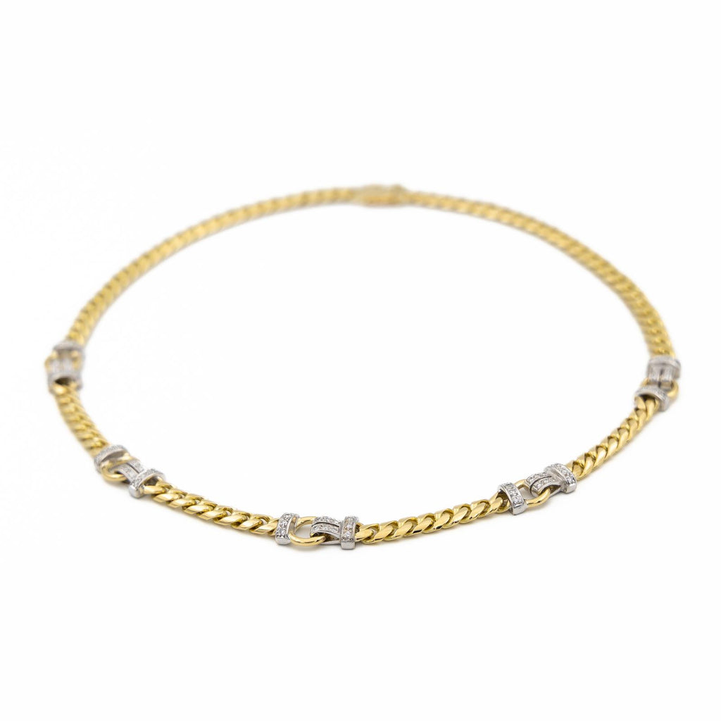 Collier Maille gourmette Or jaune, Or blanc Diamant