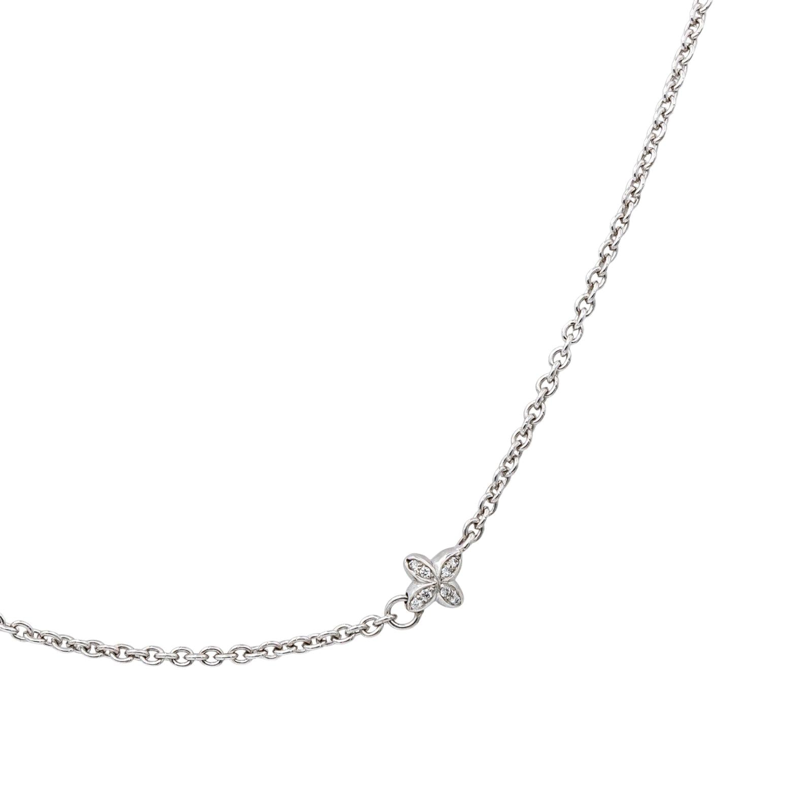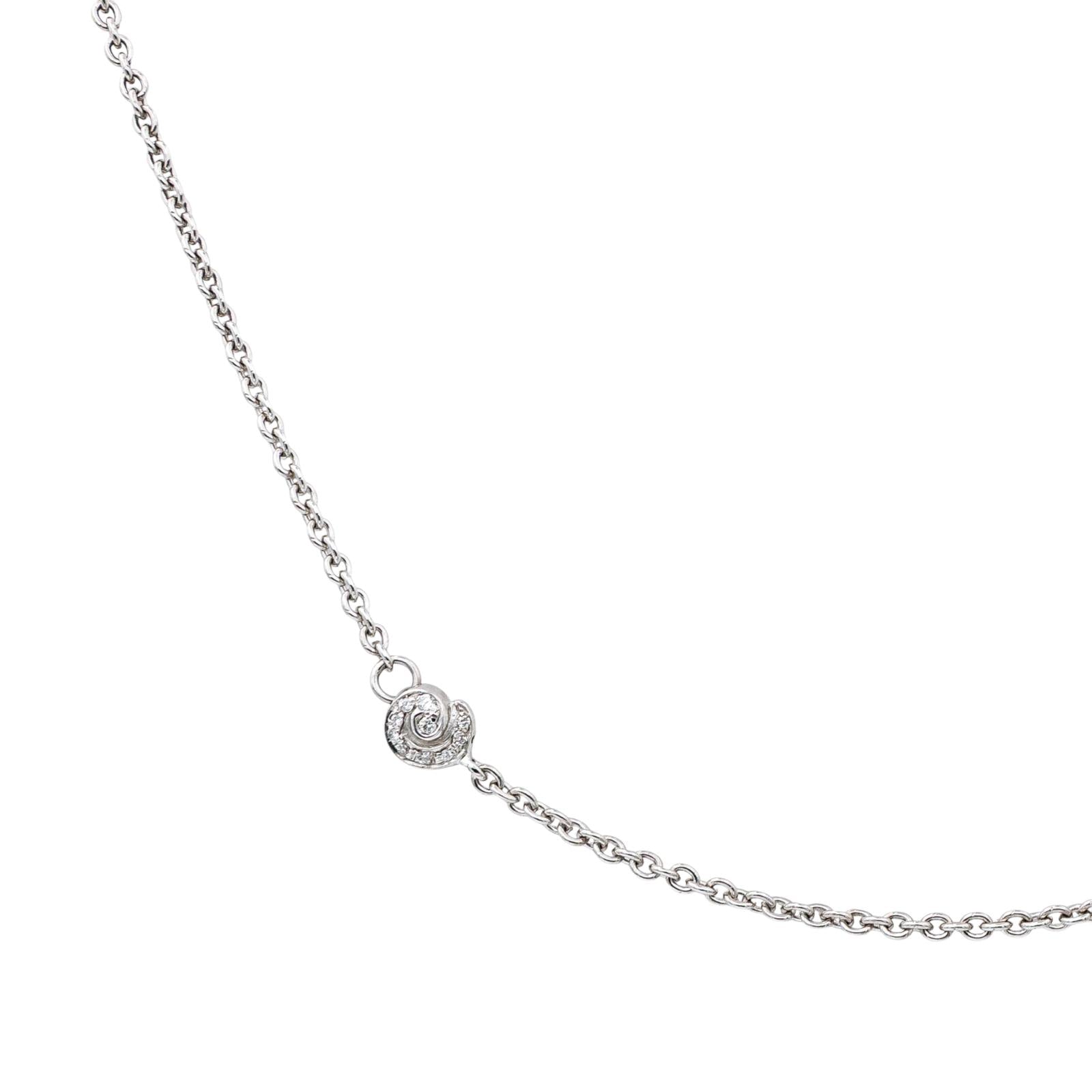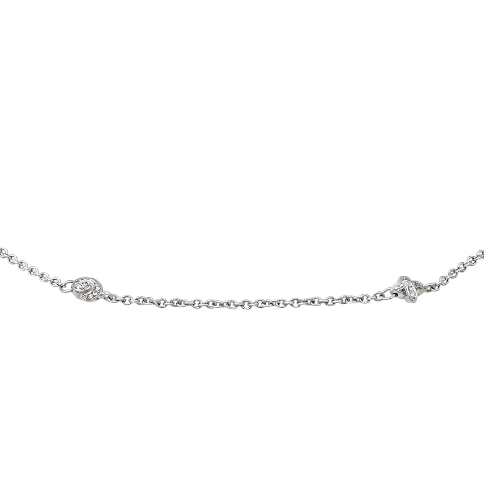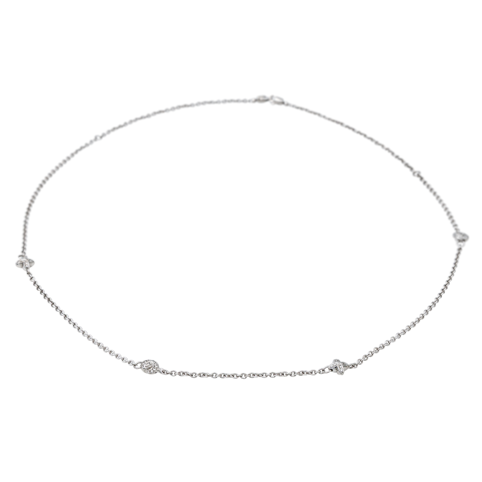 Collier en or blanc 750 millièmes (18 carats), motifs géométriques sertis de 72 diamants, taille brillant, environ G-SI, environ 0,36 ct, (chaque diamant d'un poids d'environ 0,005 ct), maille forçat, longueur : 61 cm, largeur de la chaîne : 0,21 cm, longueur de la partie comprenant les motifs : 0,77 cm, largeur : 0,41 cm, poids total : 14,60 g, poinçon hibou, excellent état