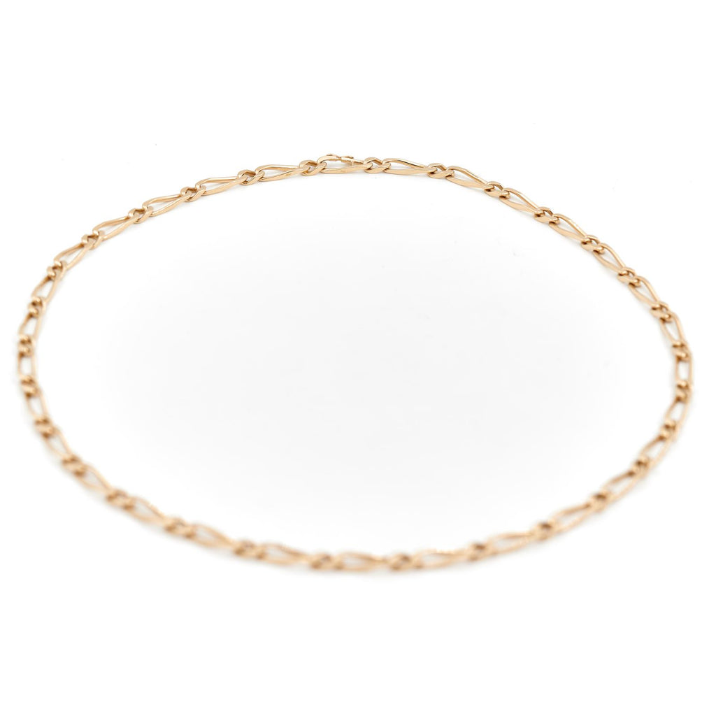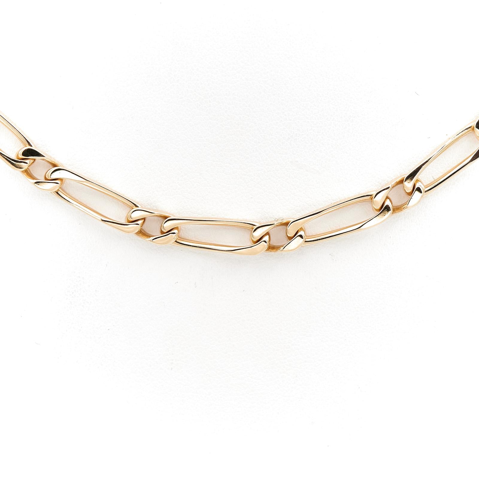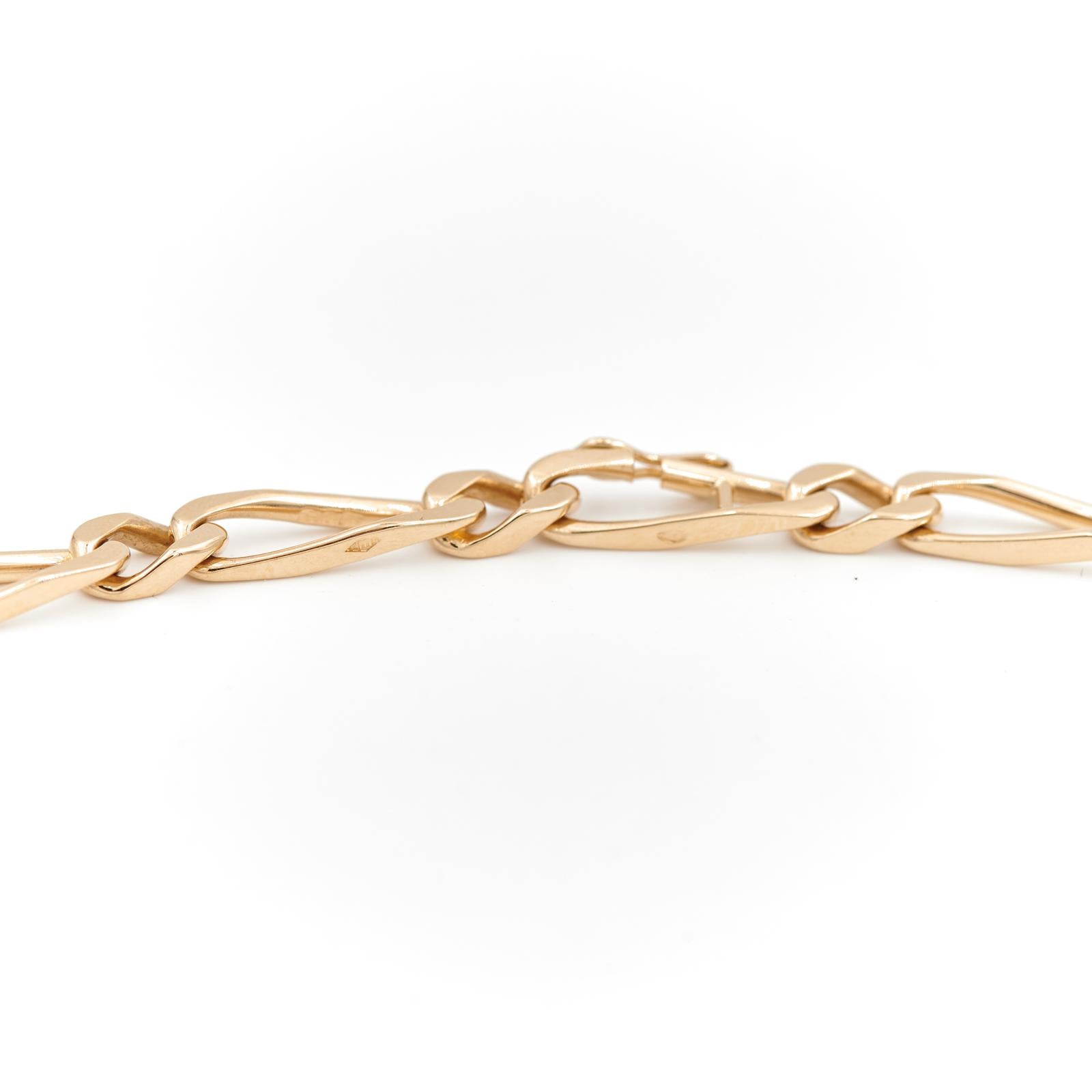 Collier en or jaune 750 millièmes (18 carats), maille alternée, fermoir en huit de sécurité, longueur: 57 cm, largeur: 0,49, poids total: 39,63 g, poinçon tête d'aigle, excellent état.