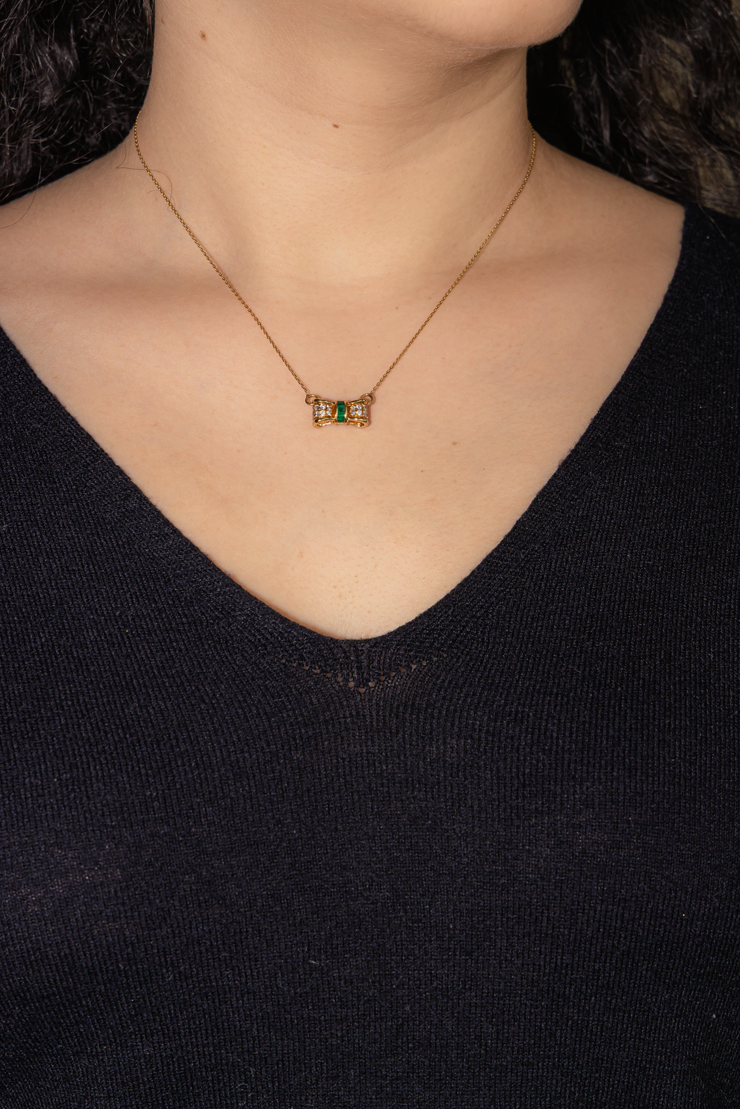 Collier Or jaune Emeraude, Diamant