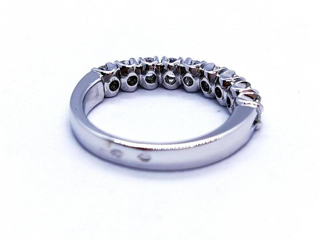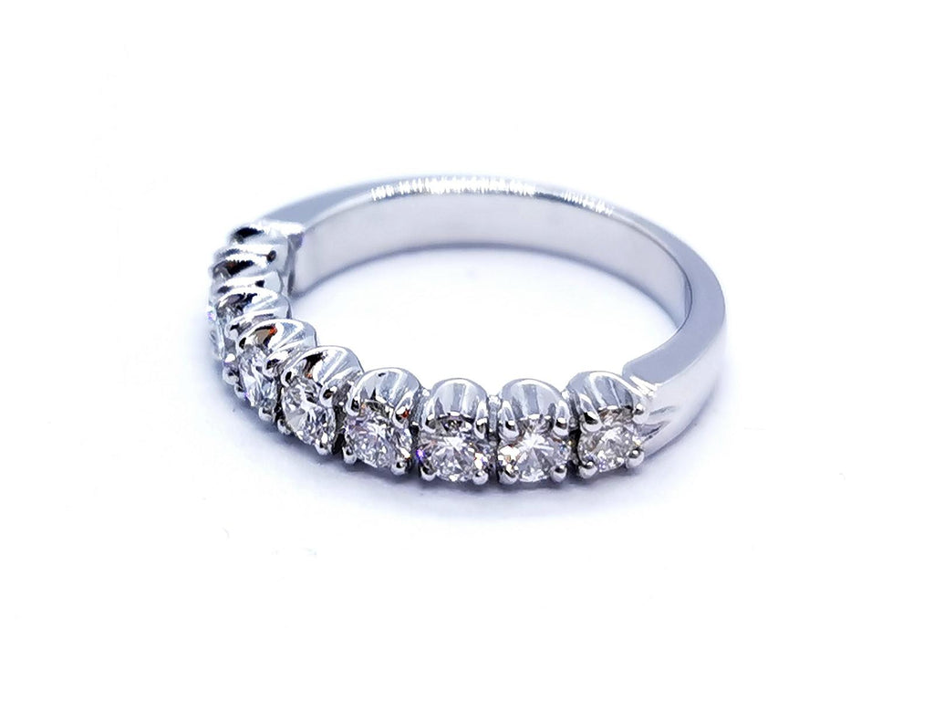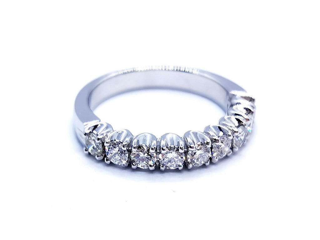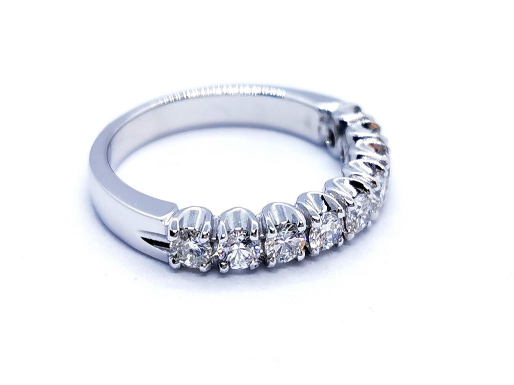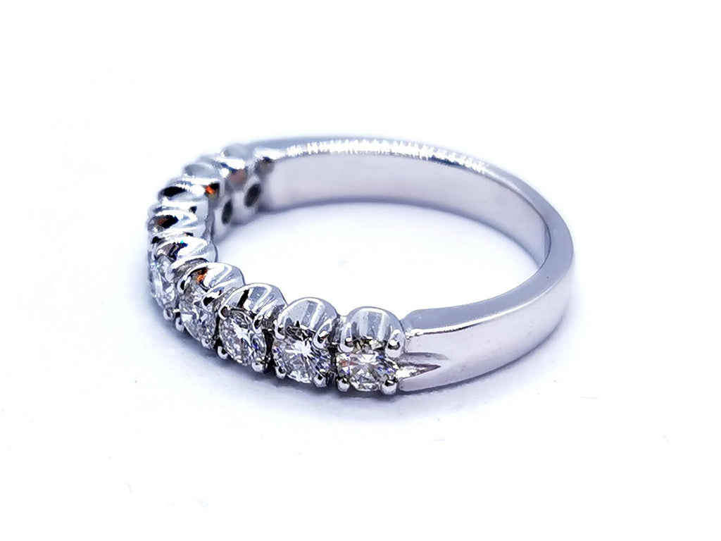 half wedding ring in 750 thousandths (18 carat) white gold, set with 9 brilliant-cut F-VS diamonds totaling 0.81 ct, claw-set, ring size: 52, width: 0.36 cm, total weight: 4, 69 g, eagle's head hallmark, mint condition