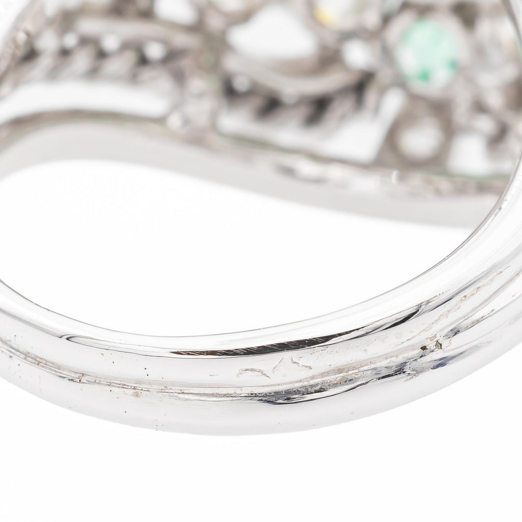 Bague Cocktail Or blanc, Platine Emeraude, Diamant