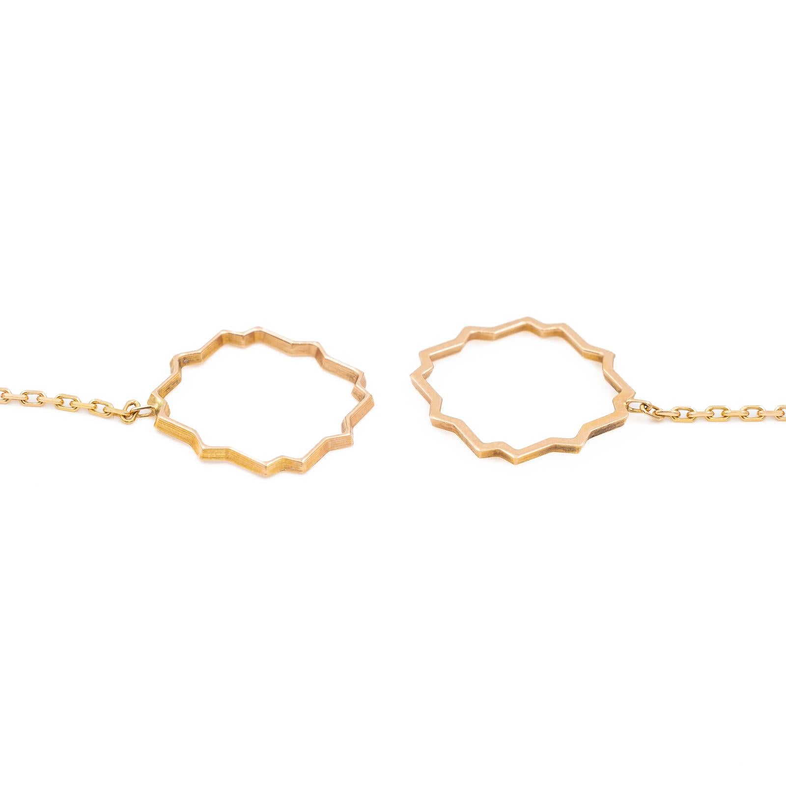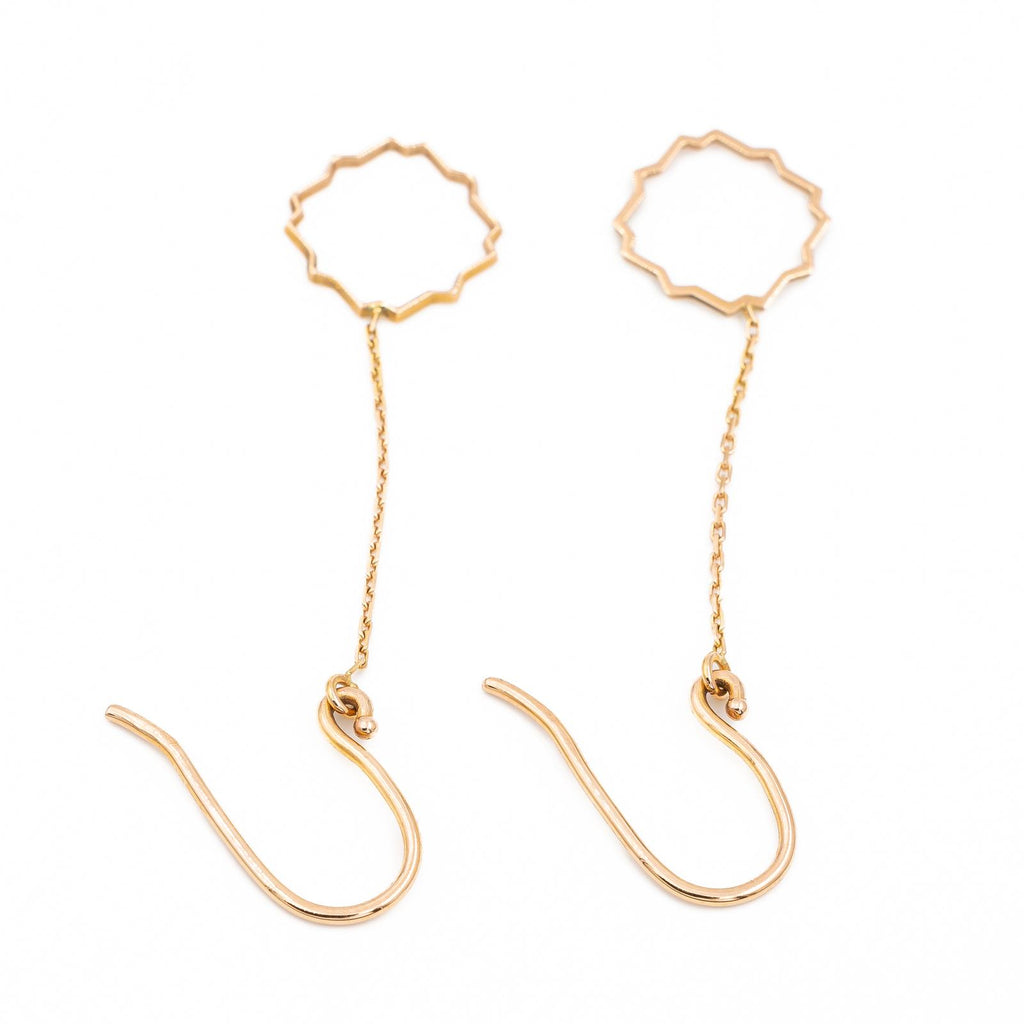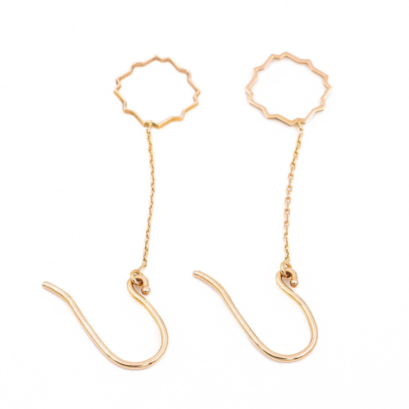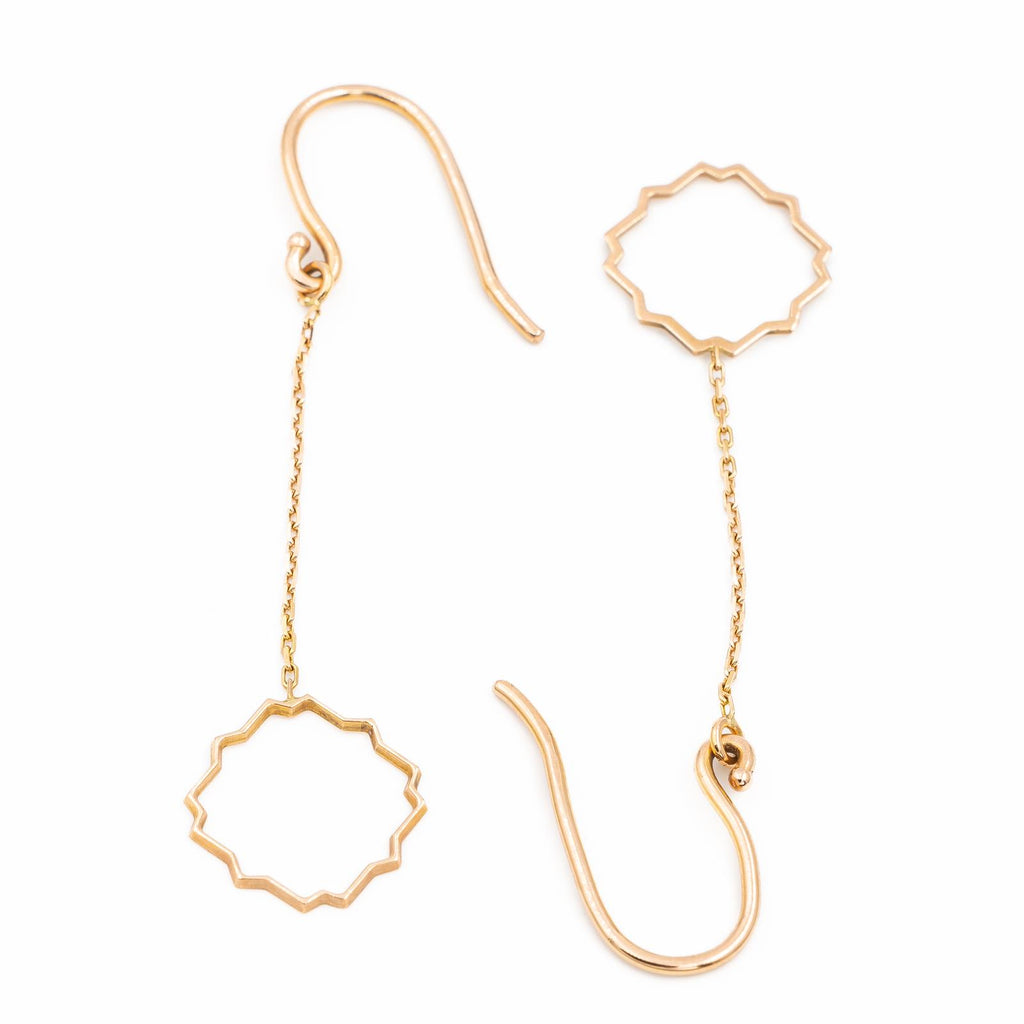 Dangling earrings in 750 thousandths (18 carat) pink gold, graphic motif in transparency suspended from a cable chain, dimensions of the motif: 1 cm x 1 cm, width of the chain: 0.7 mm, total length: 4 cm, total weight: 0.82 g, eagle's head hallmark, new condition, Internet exclusive