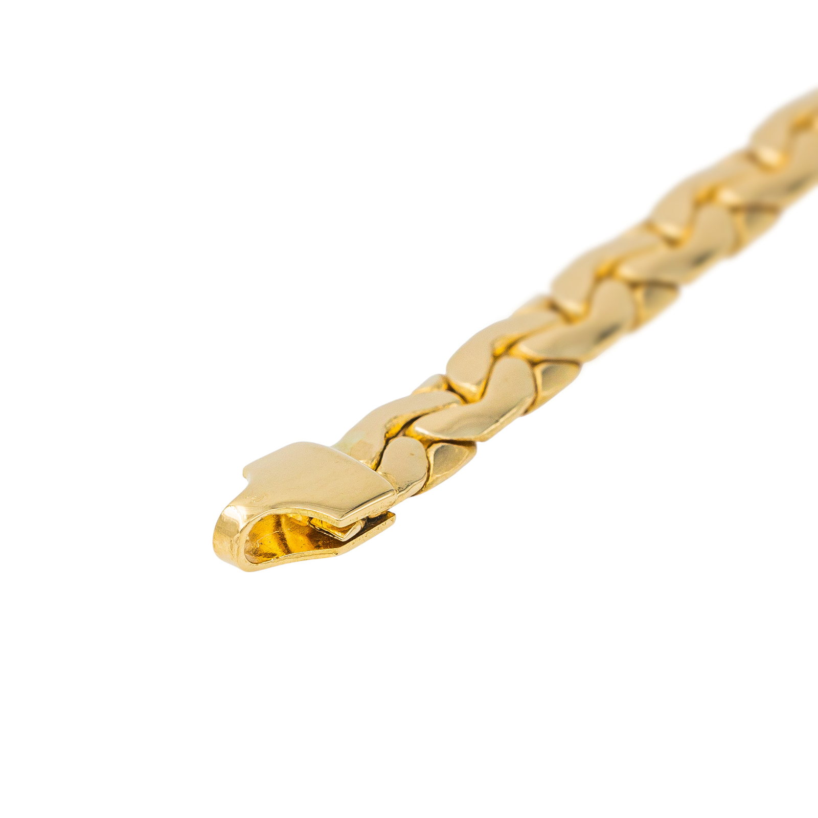 Bracelet en or jaune 750 millièmes (18 carats), maille haricot, longueur : 19 cm, largeur: 0,5 cm, poids total: 7,84 g, poinçon hibou, excellent état