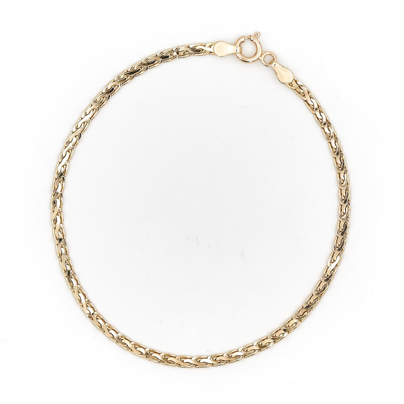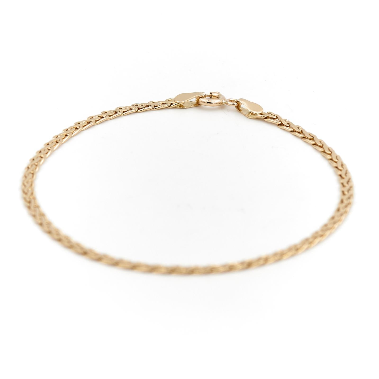 Bracelet en or jaune 750 millièmes (18 carats), maille haricot , longueur: 19,5 cm, largeur: 0,24 cm, poids total: 4,1 g , poinçon tête d'aigle, excellent état.