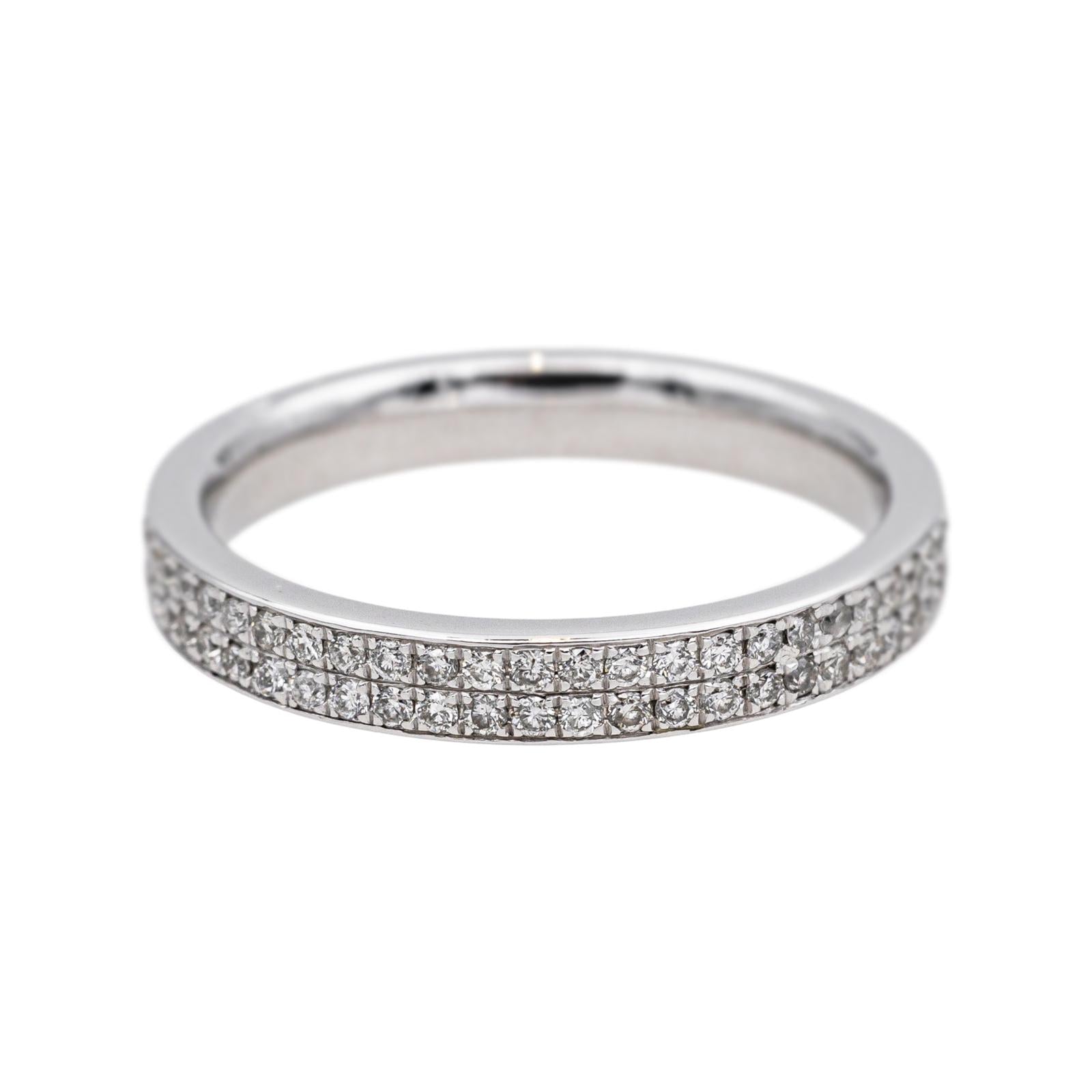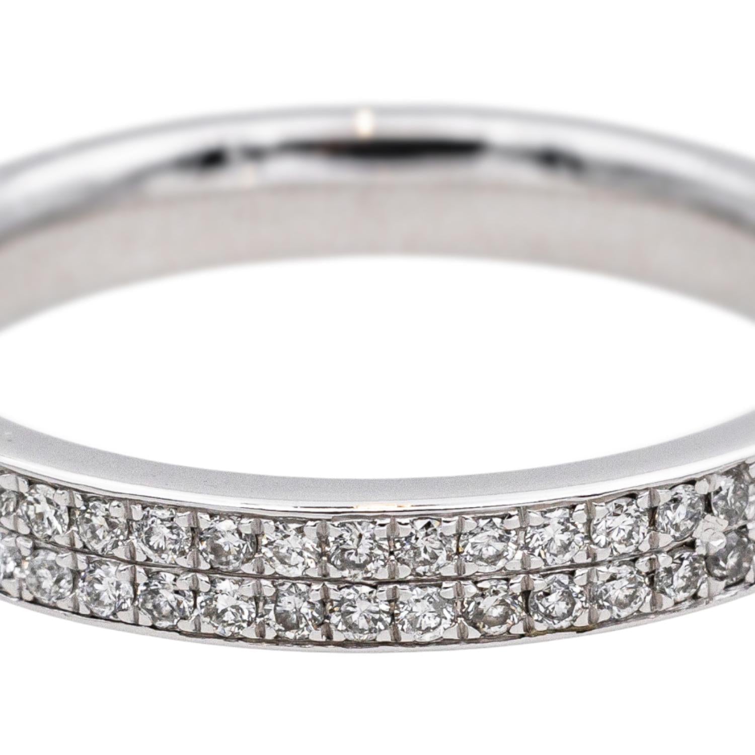 Alliance tour complet en or blanc 750 millièmes (18 carats), sertie de 104 diamants taille brillant environ G-SI, d'environ 0,005 ct chacun, poids total diamants : environ 0,52 ct, largeur sur le dessus : 0,30 cm, tour de doigt : 52, poids total : 3,73 g, poinçon tête d'aigle, excellent état