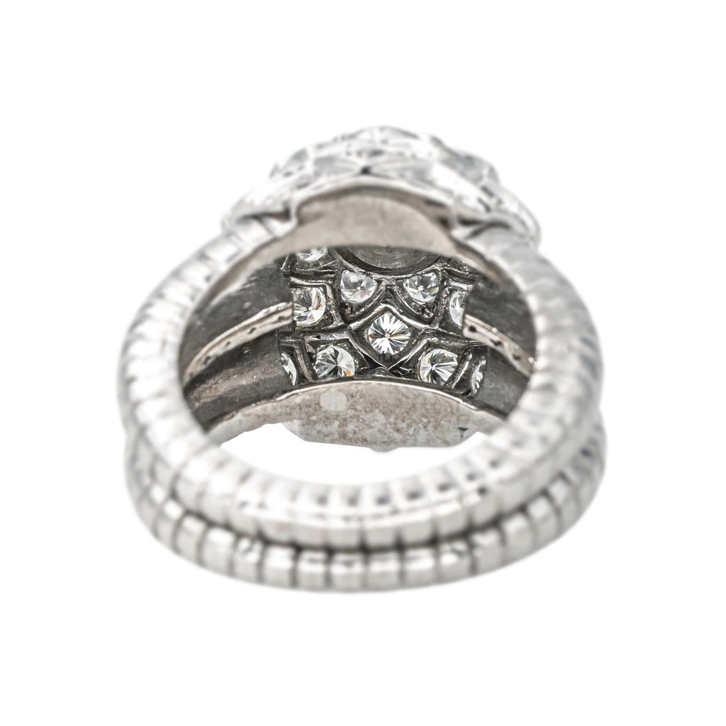 Bague en platine 950 millièmes, sertie de 37 diamants, un diamant taille ancienne, environ I-VS, d'un poids total d'environ 0,74 ct, 24 diamants demi taille, environ H-VS, d'un poids total d'environ 0,48 ct, (chaque diamant d'un poids d'environ 0,02 ct), 12 diamants taille 8/8, environ G-VS, d'un poids total d'environ 0,18 ct, (chaque diamant d'un poids d'environ 0,015 ct), poids total diamants environ : 1,40 ct, largeur sur le dessus : 1,78 cm, tour de doigt : 53, poids total : 15,53 g, poinçon mascaron, excellent état