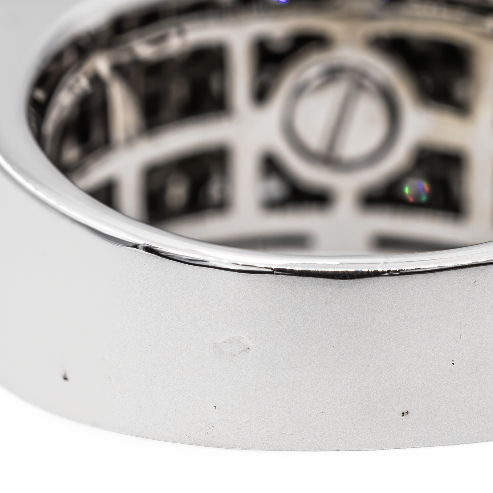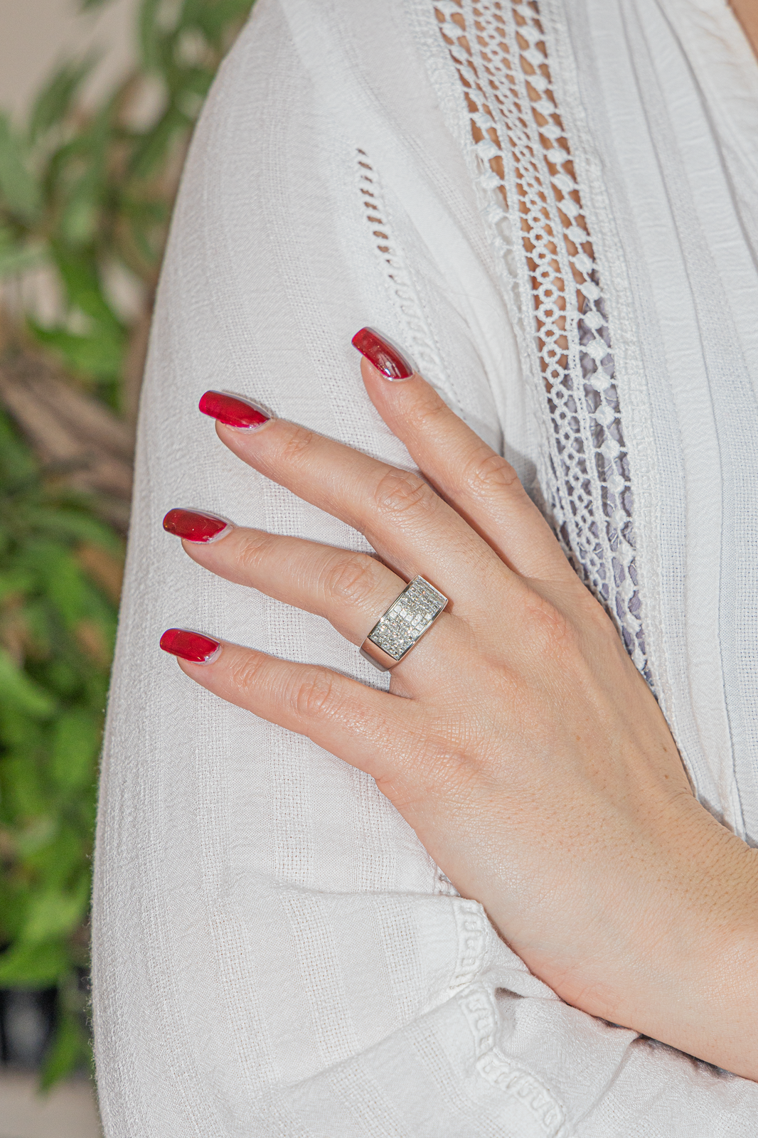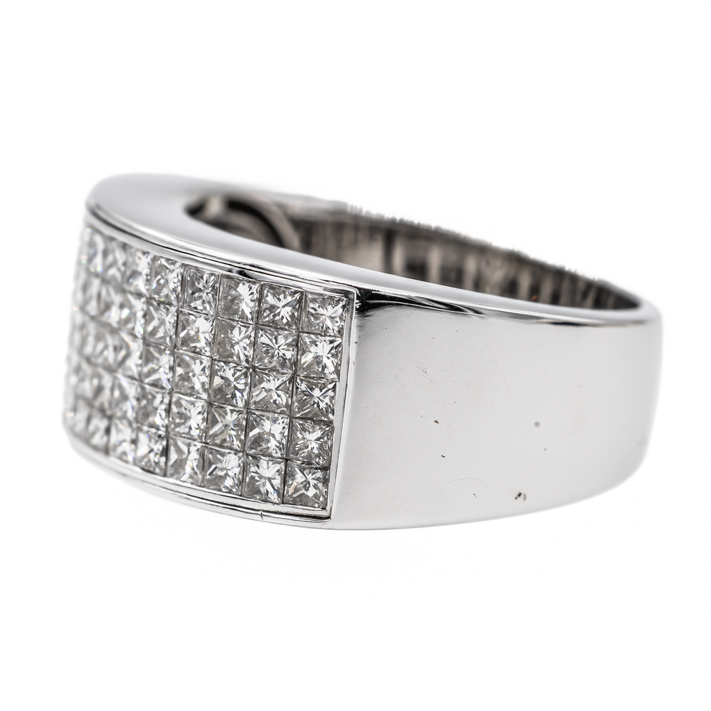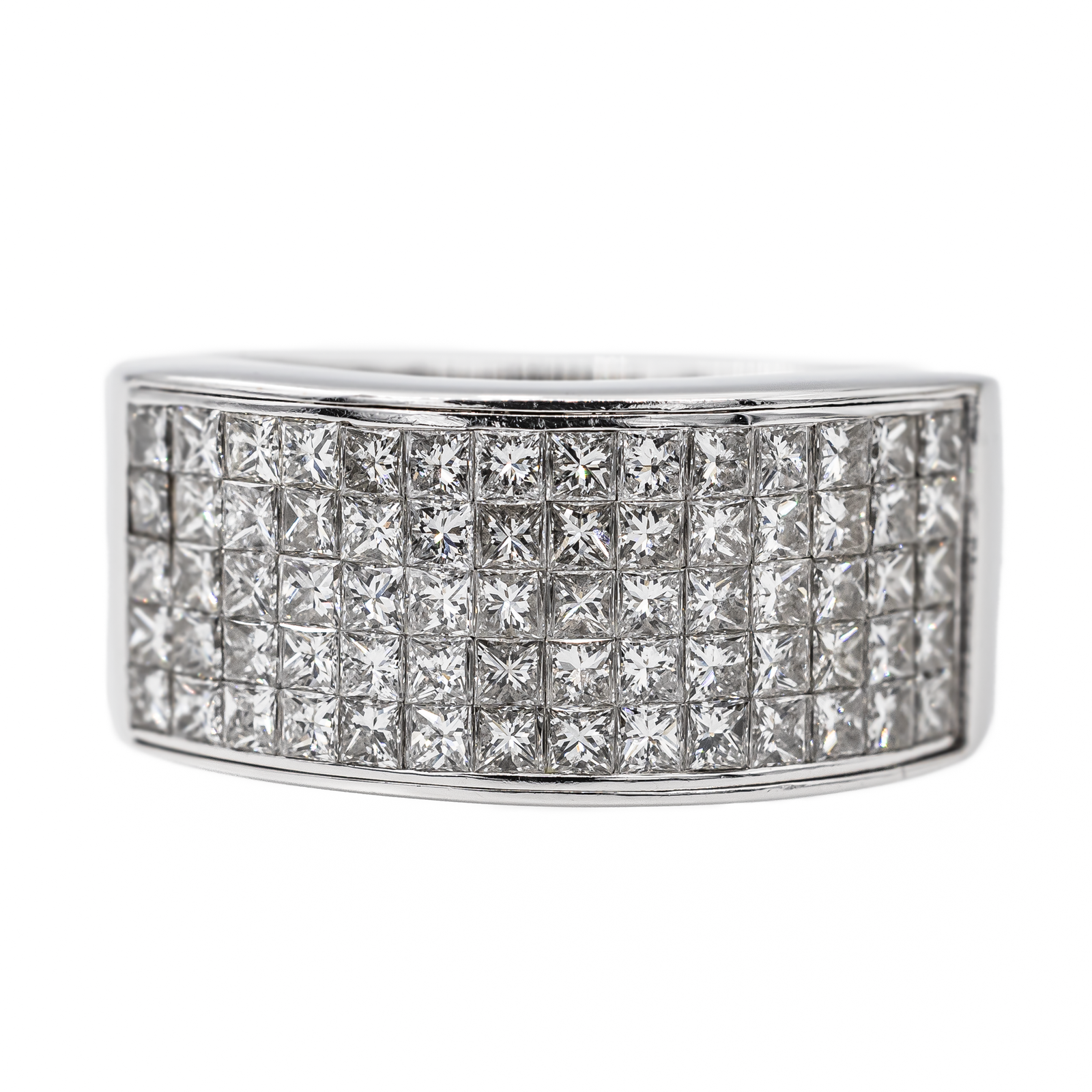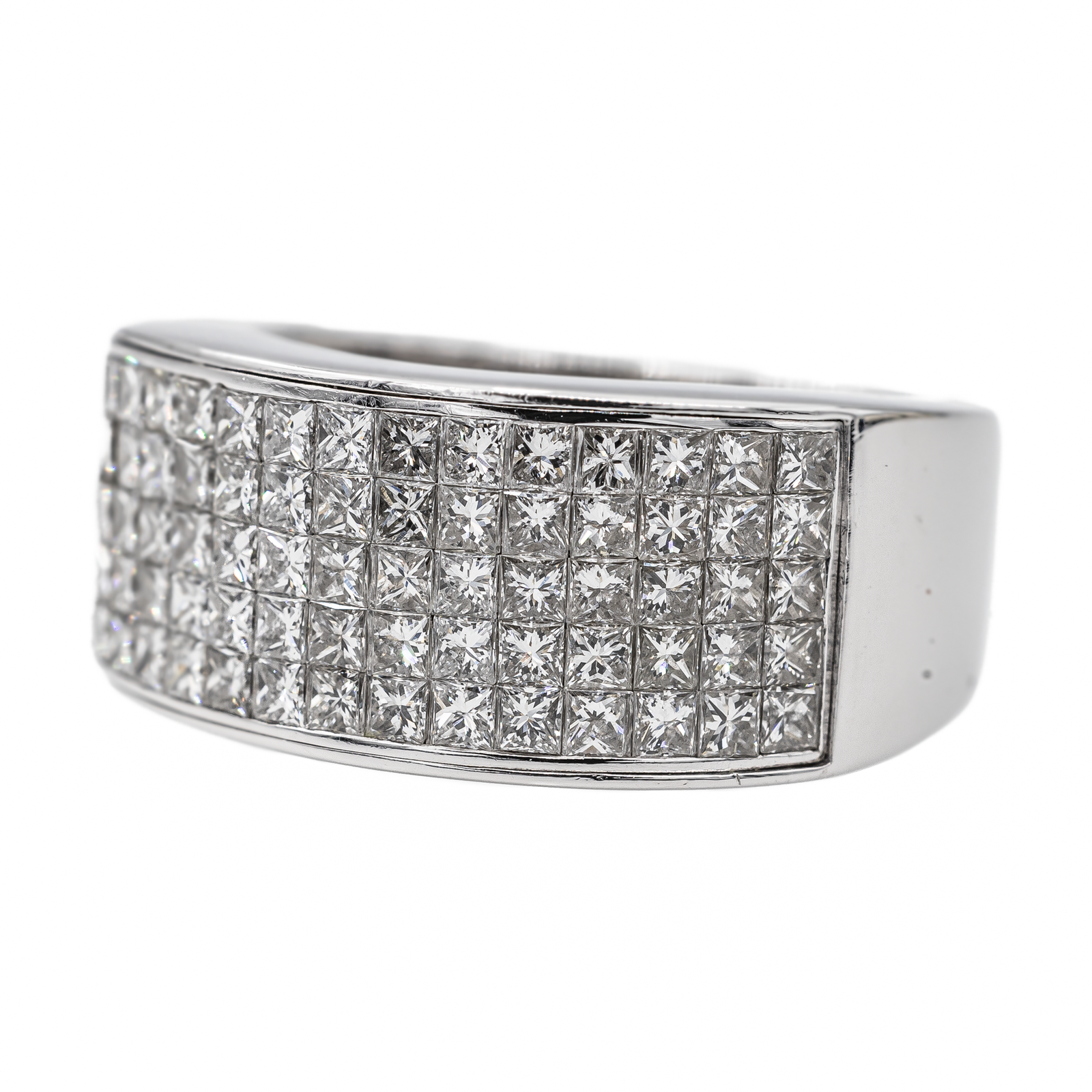 Bague en or blanc 750 millièmes (18 carats) pavée de diamants, 70 diamants taille carré, environ G-SI, d'un poids total d'environ 2,10 cts, (chaque diamant d'un poids d'environ 0,03 ct), largeur sur le dessus: 0,97 cm, tour de doigt: 54, poids total: 11,77 g, poinçon tête d'aigle, excellent état