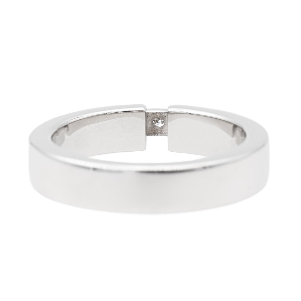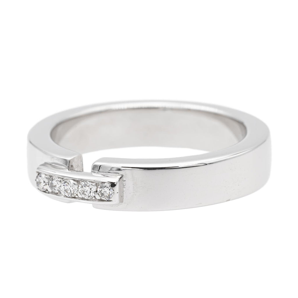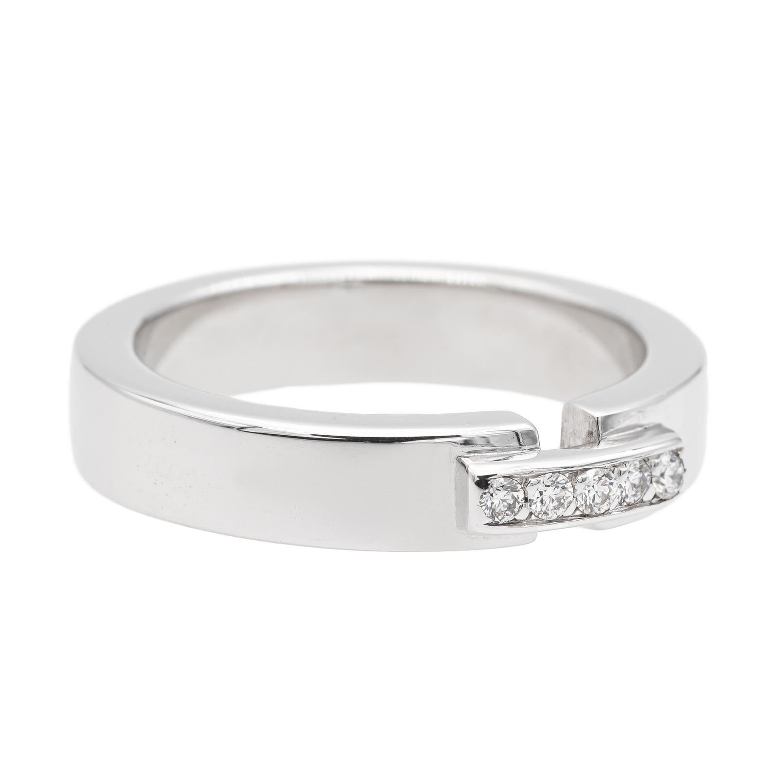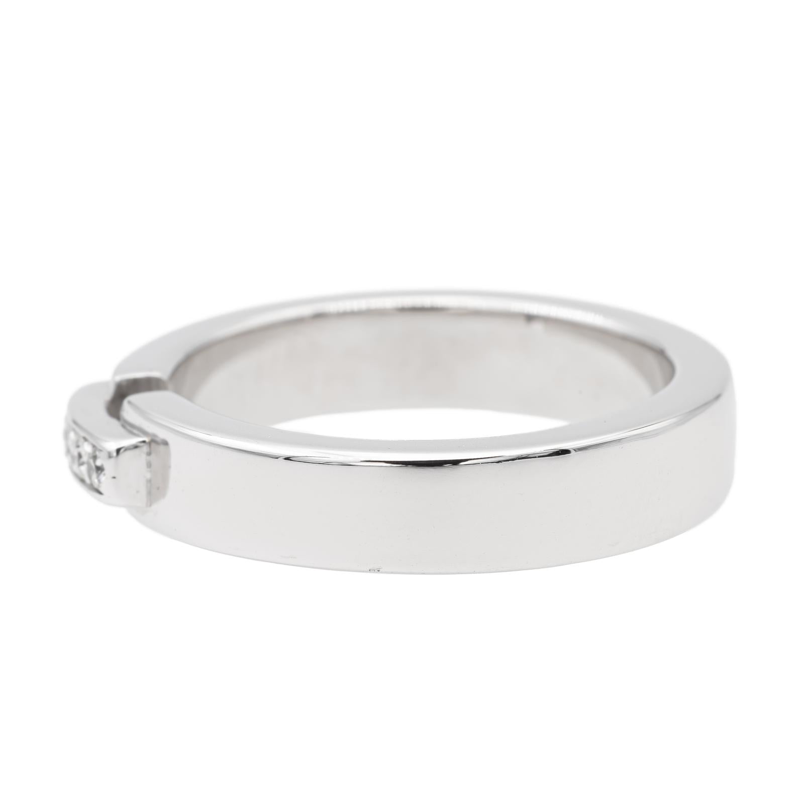 Bague en or blanc 750 millièmes (18 carats), sertie de 5 diamants taille brillant environ F-VS, d'environ 0,01 ct chacun, poids total diamants: environ 0,05 ct, largeur sur le dessus: 0,39 cm, tour de doigt: 50, poids total: 7,15 g, poinçon tête d'aigle, excellent état