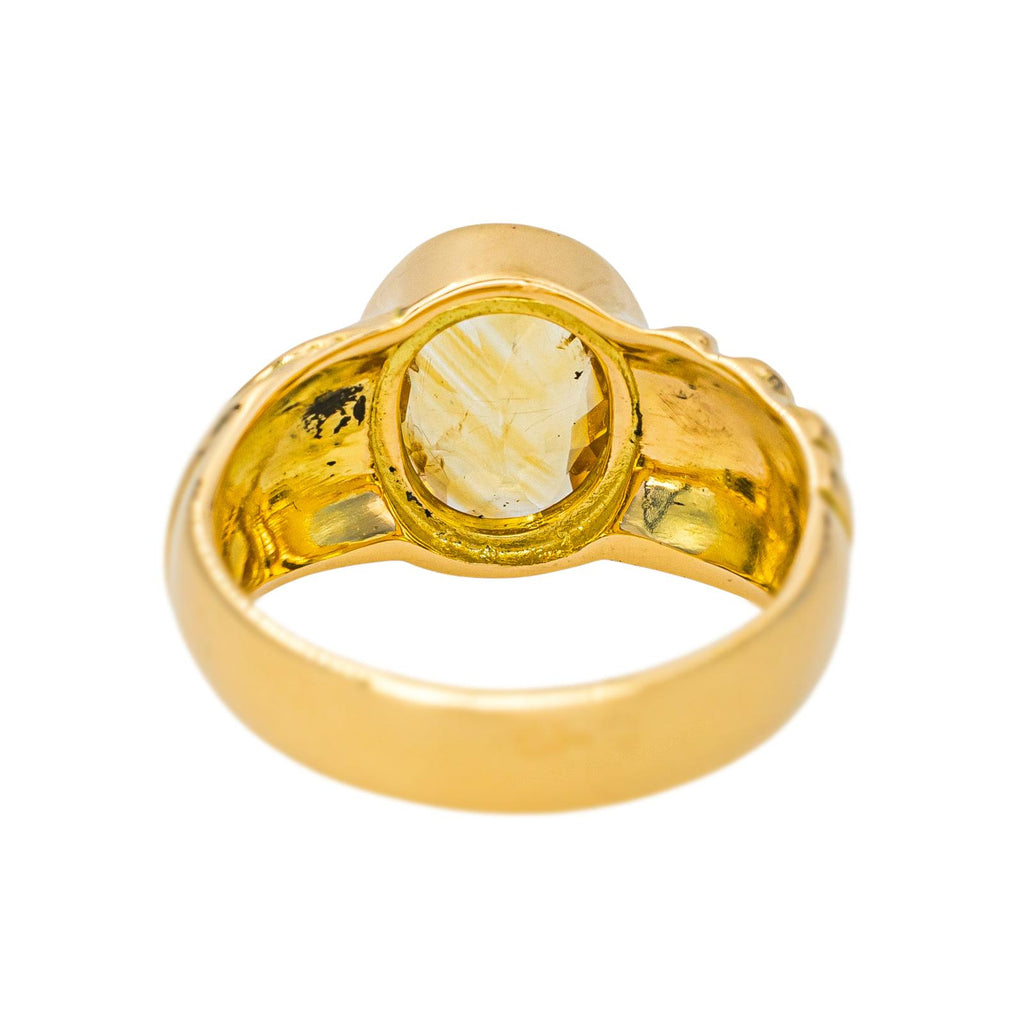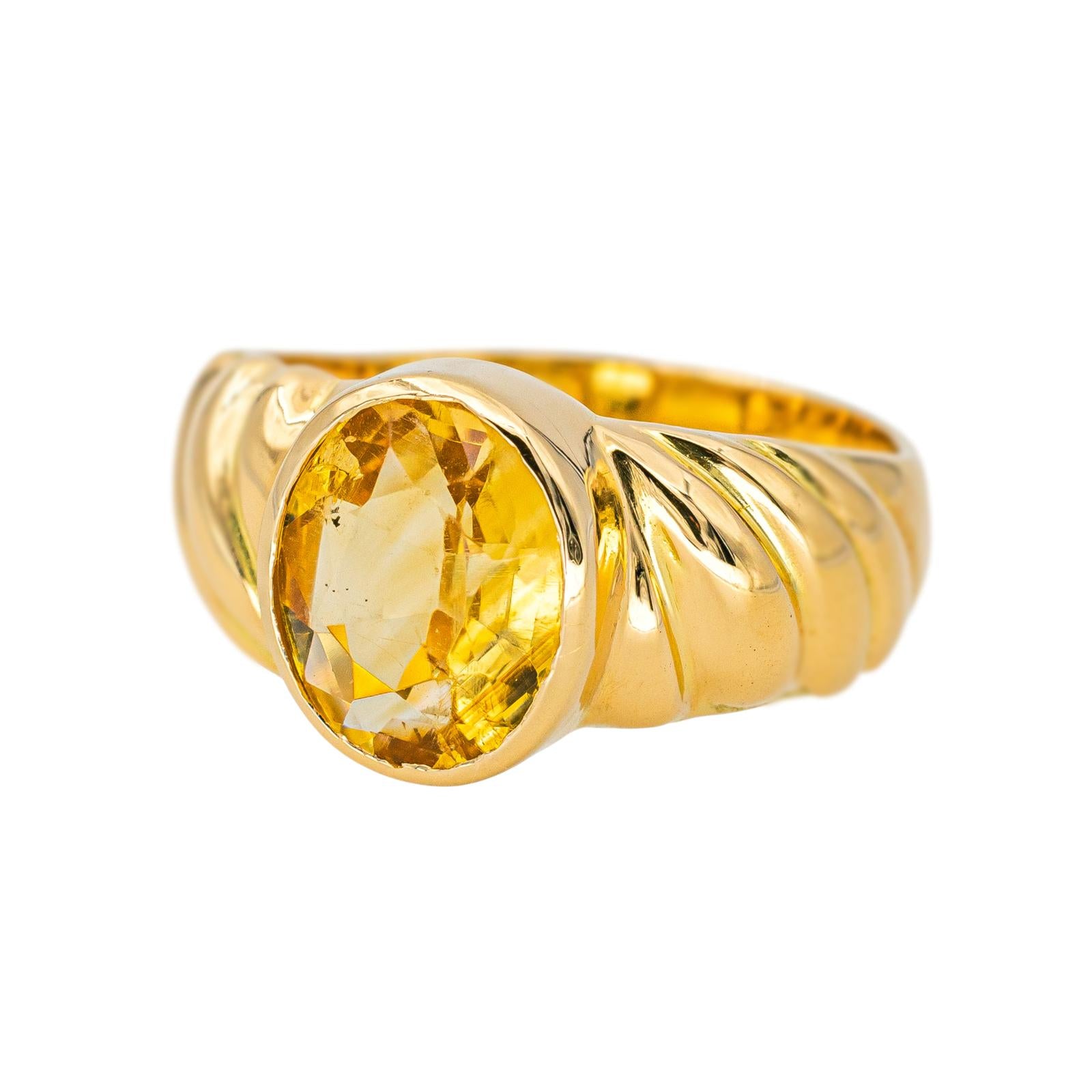 Bague en or jaune 750 millièmes (18 carats), sertie d'une citrine, taille ovale, d'un poids total d'environ 2,26 cts, largeur sur le dessus : 1,16 cm, tour de doigt : 55, poids total : 7,52g, poinçon hibou, excellent état