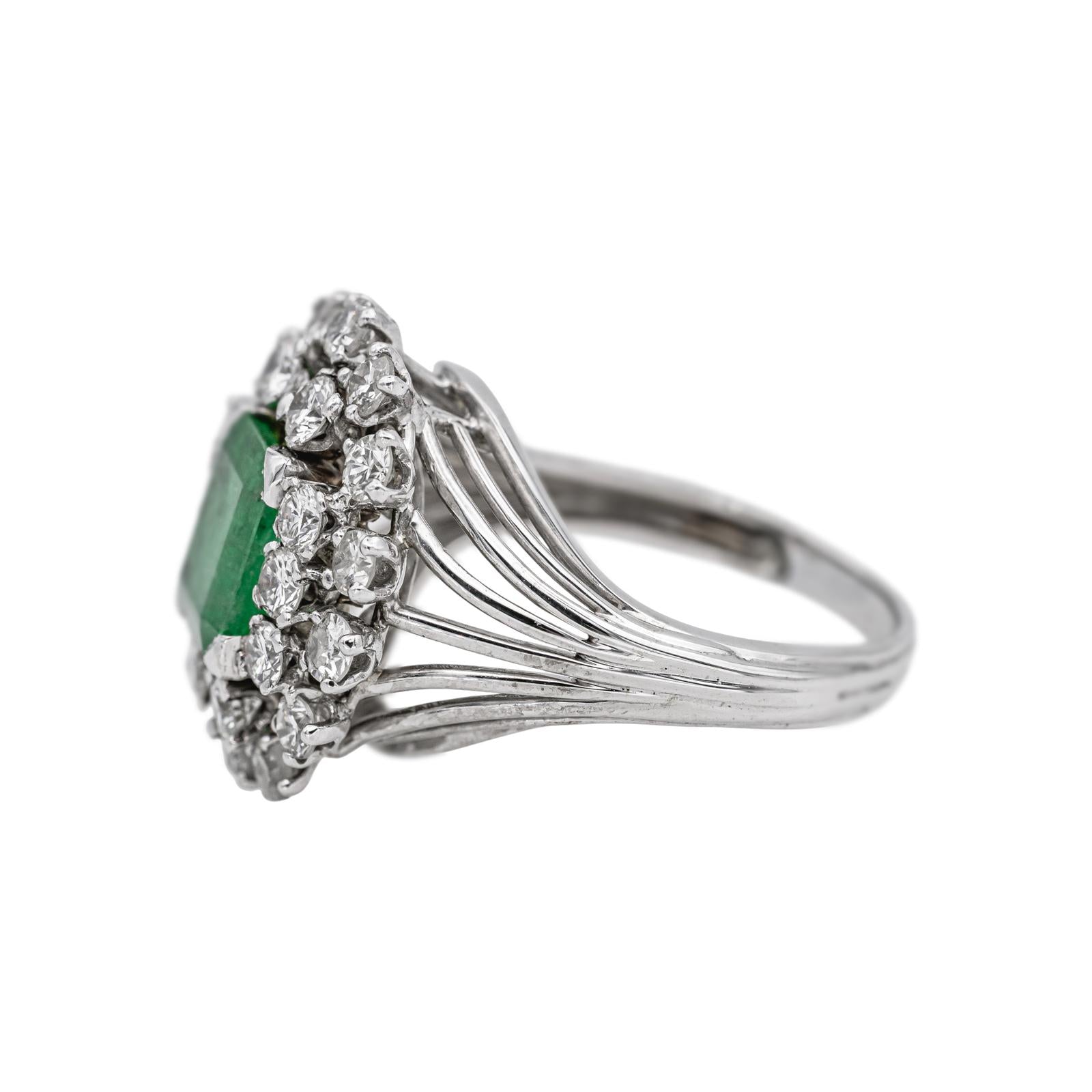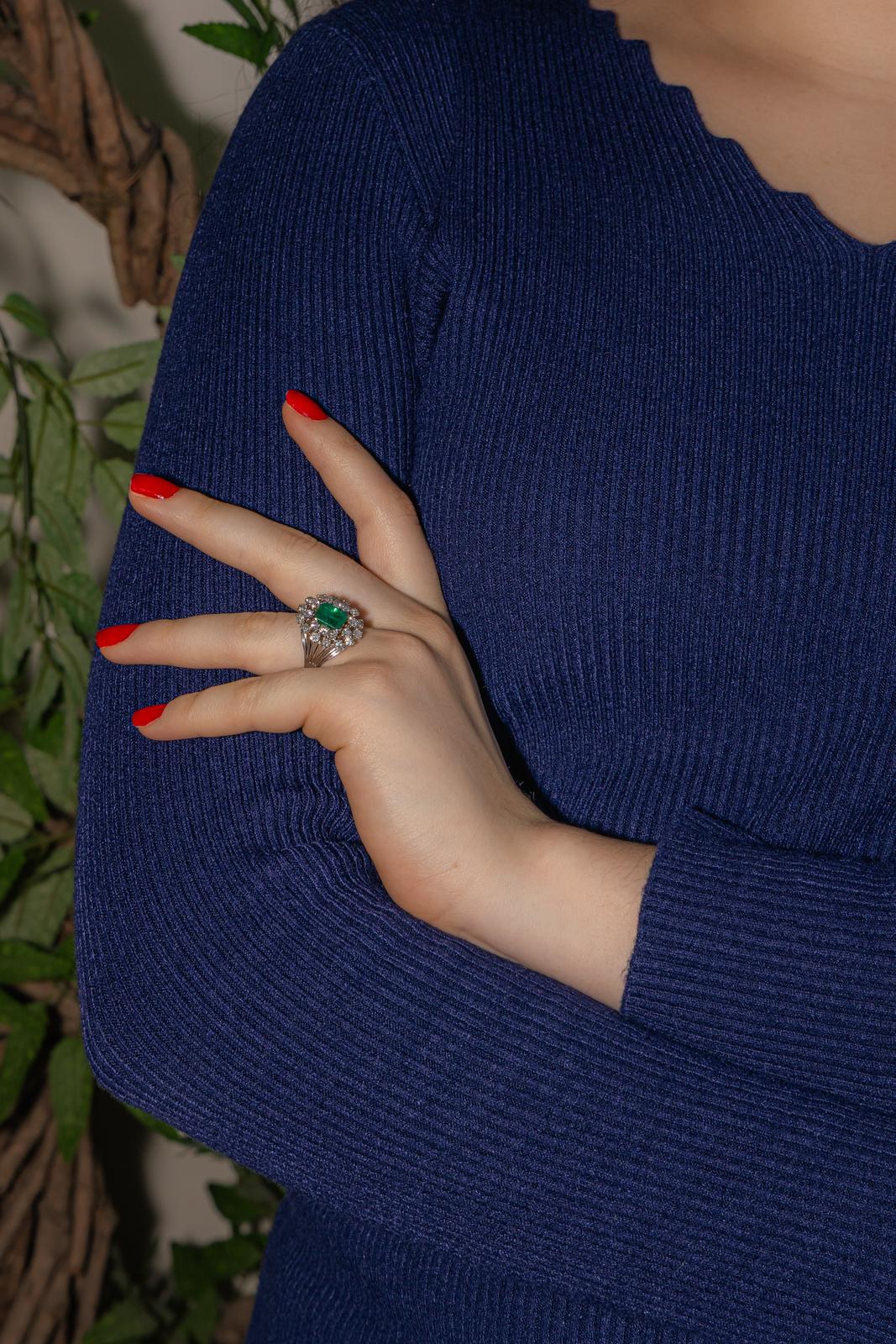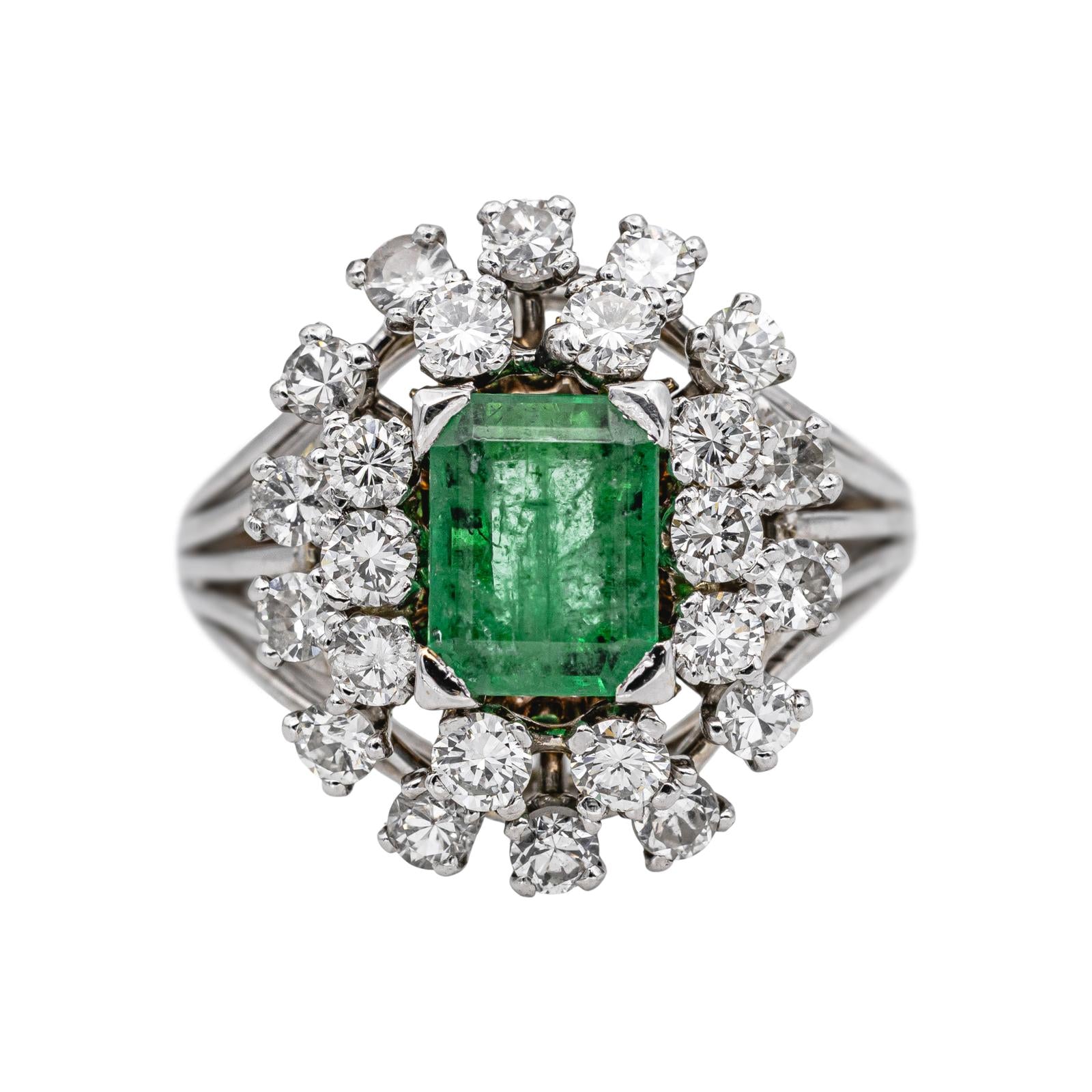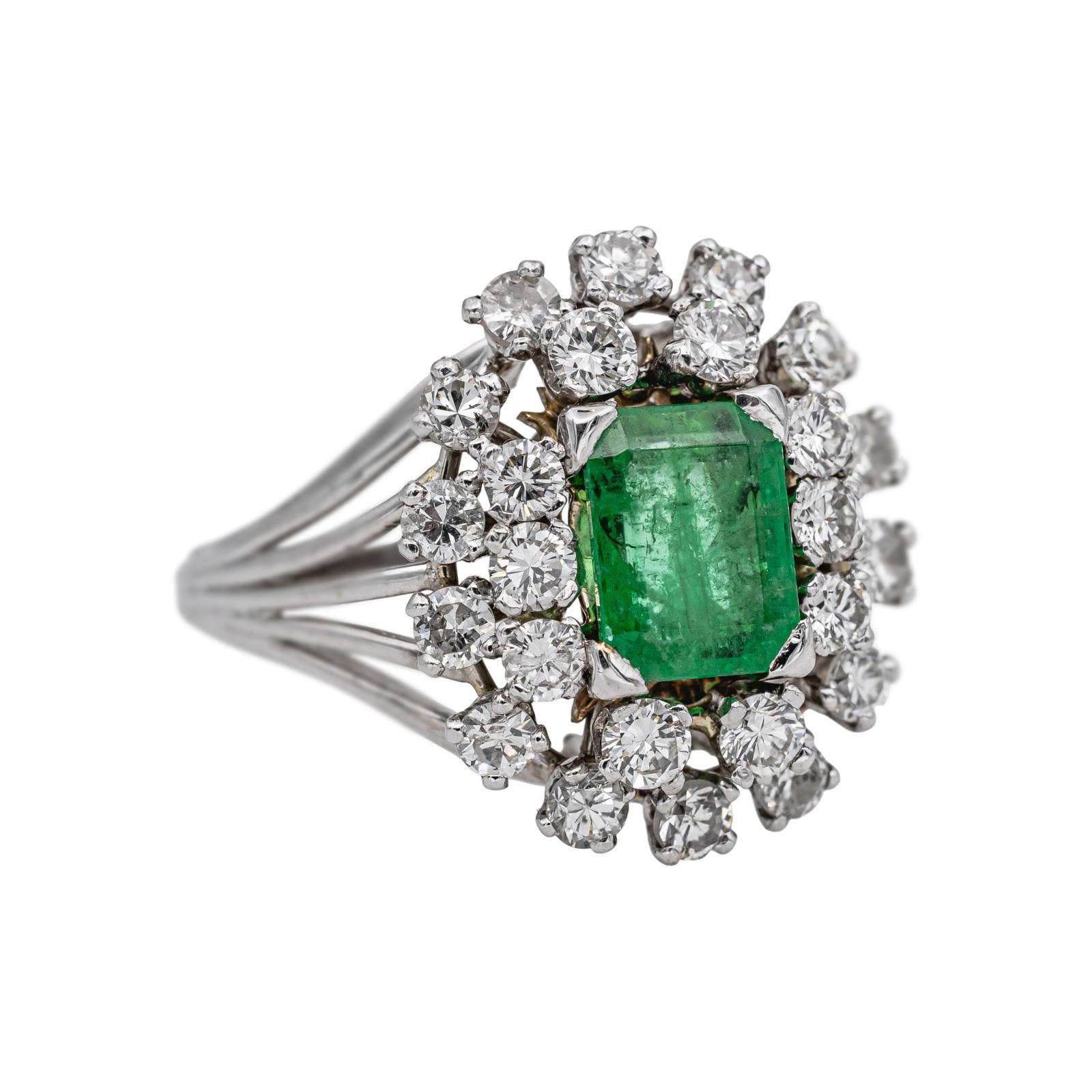 Bague Pompadour Or blanc, Platine Emeraude, Diamant