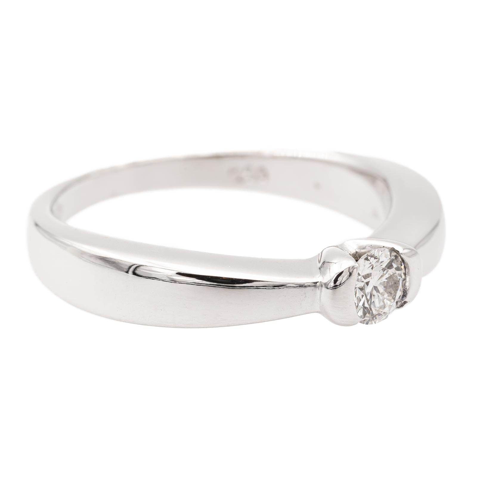 Solitaire ring signed by Balmain, 750 thousandths (18 carat) white gold, brilliant cut diamond of approximately 0.15ct, approximately H-SI, ring size: 53, width on the top: 0.33 cm, maximum thickness of the ring: 2.8 cm, total weight: 4.26 g, eagle's head hallmark, excellent condition