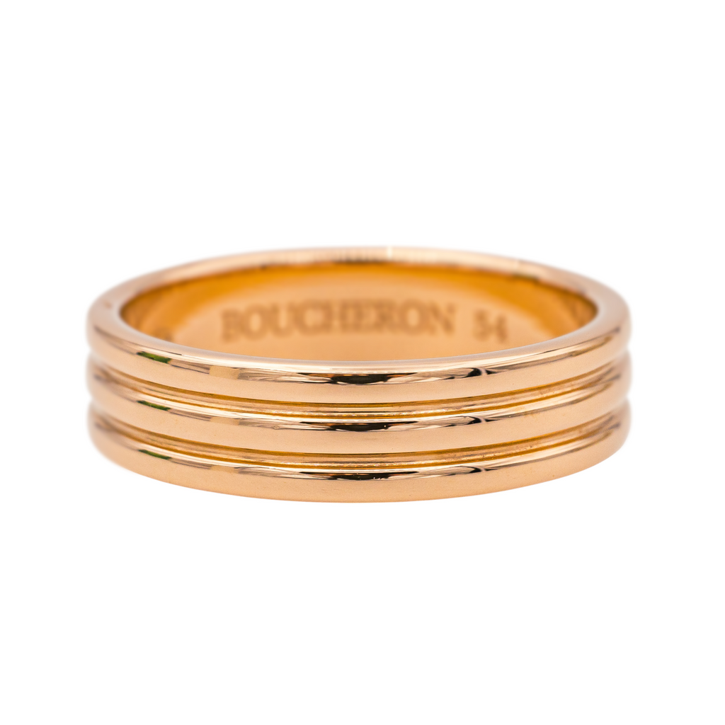 Alliance signée de la Maison Boucheron en or rose 750 millièmes (18 carats), modèle Godron, largeur sur le dessus : 0,50 cm, tour de doigt : 54, poids total : 5,85 g, poinçon tête d'aigle, excellent état