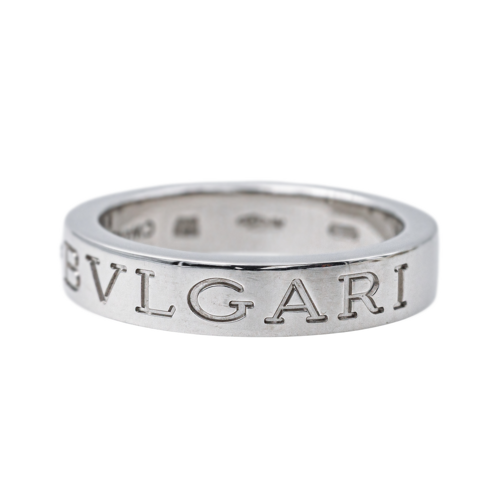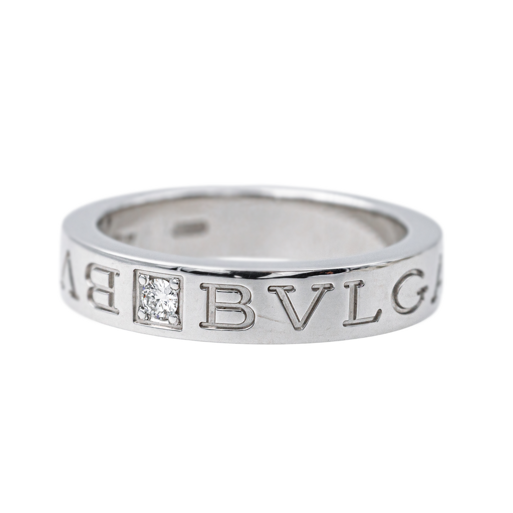 Alliance signée de la Maison Bulgari en or blanc 750 millièmes (18 carats), modèle B.Zero1, sertie de 1 diamant taille brillant environ G-VS, d'environ 0,04 ct, largeur sur le dessus : 0,40 cm, tour de doigt : 51, poids total : 6,79 g, poinçon hibou, numérotée : CW4VLL, excellent état