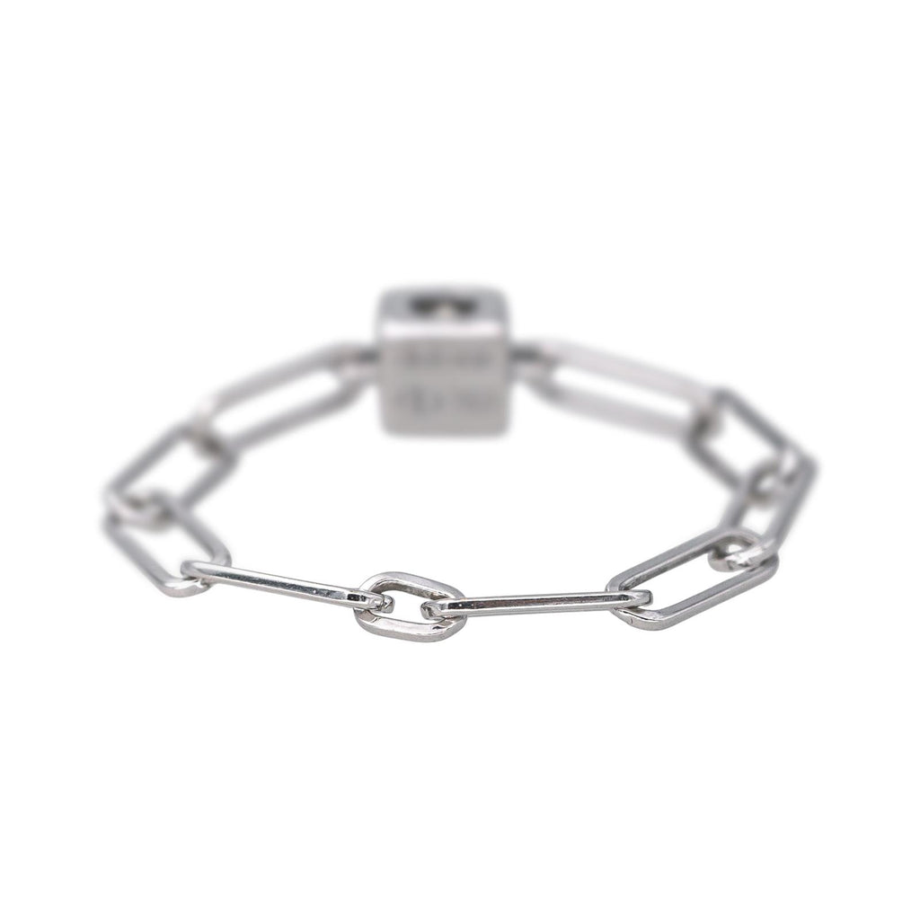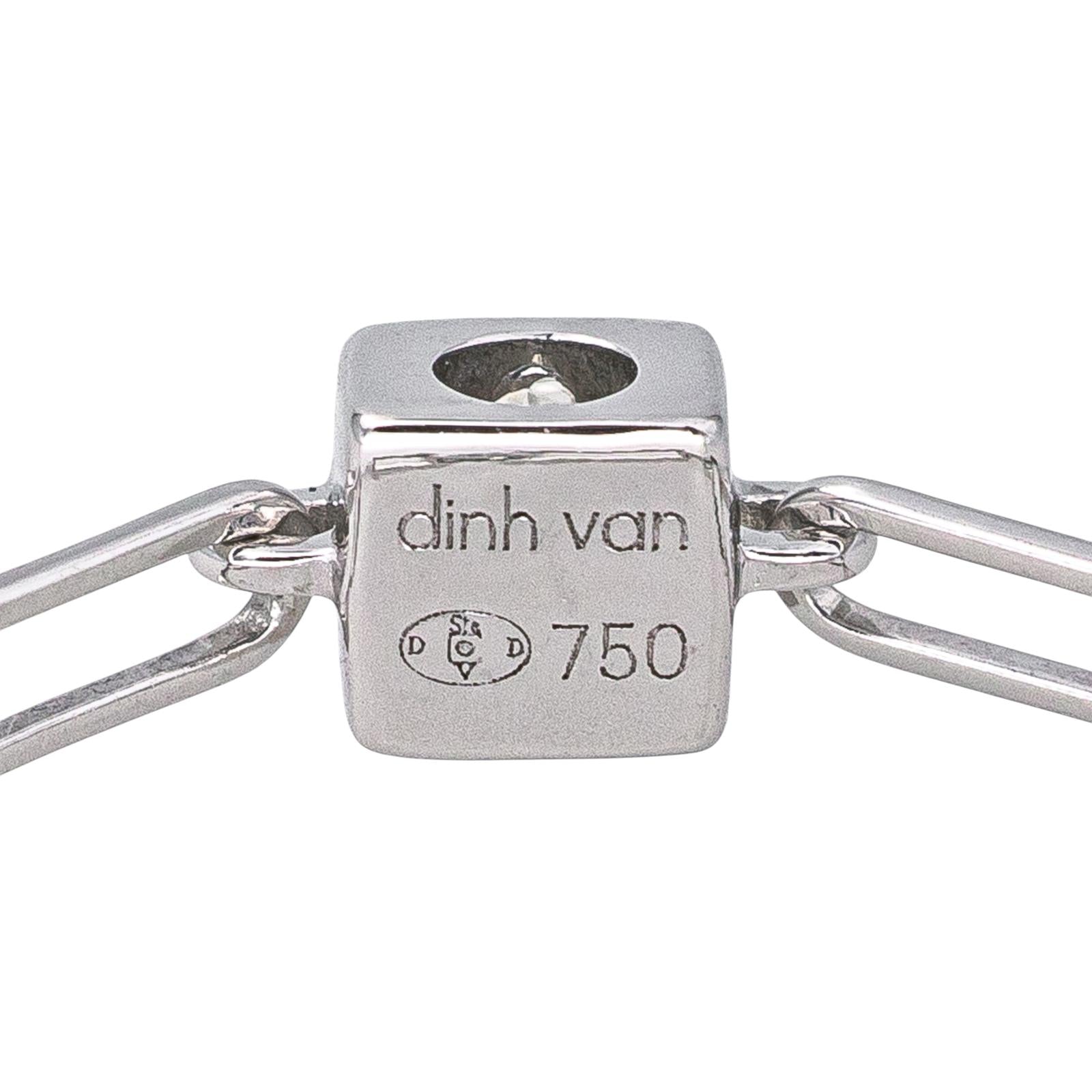 Bague signée de la Maison Dinh Van en or blanc 750 millièmes (18 carats) testé, modèle Cube, sertie d’un diamant taille brillant environ G-VS, d'un poids total d’environ 0,06 ct, largeur sur le dessus : 0,36 cm, tour de doigt : 50, poids total : 0,70 g, vendu avec pochon et certificat d'origine, excellent état