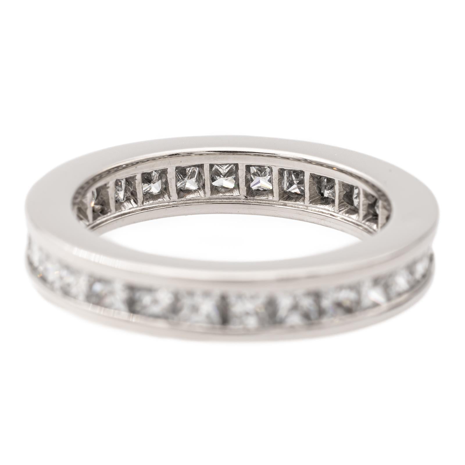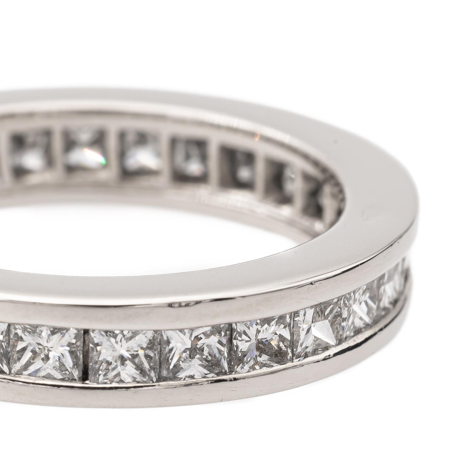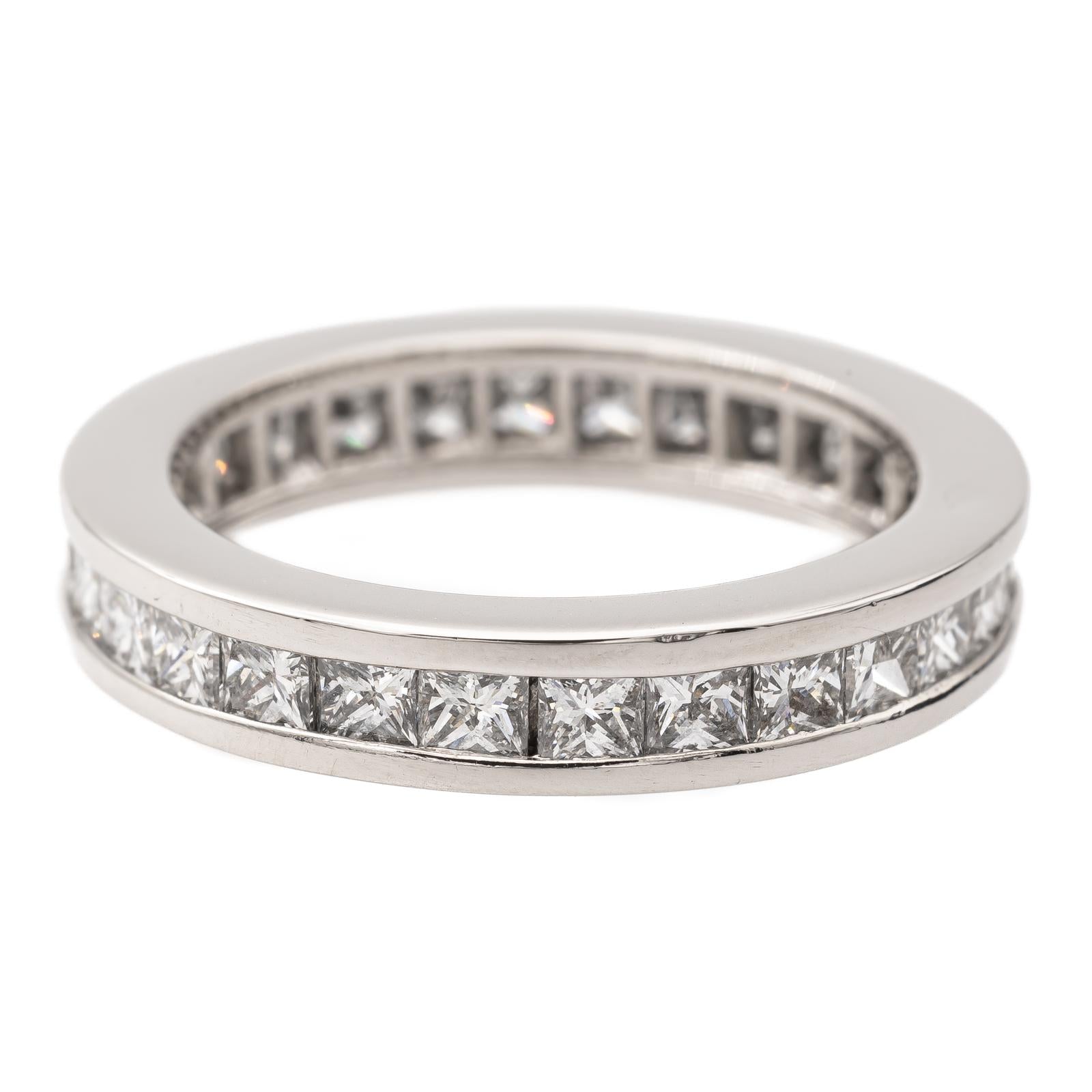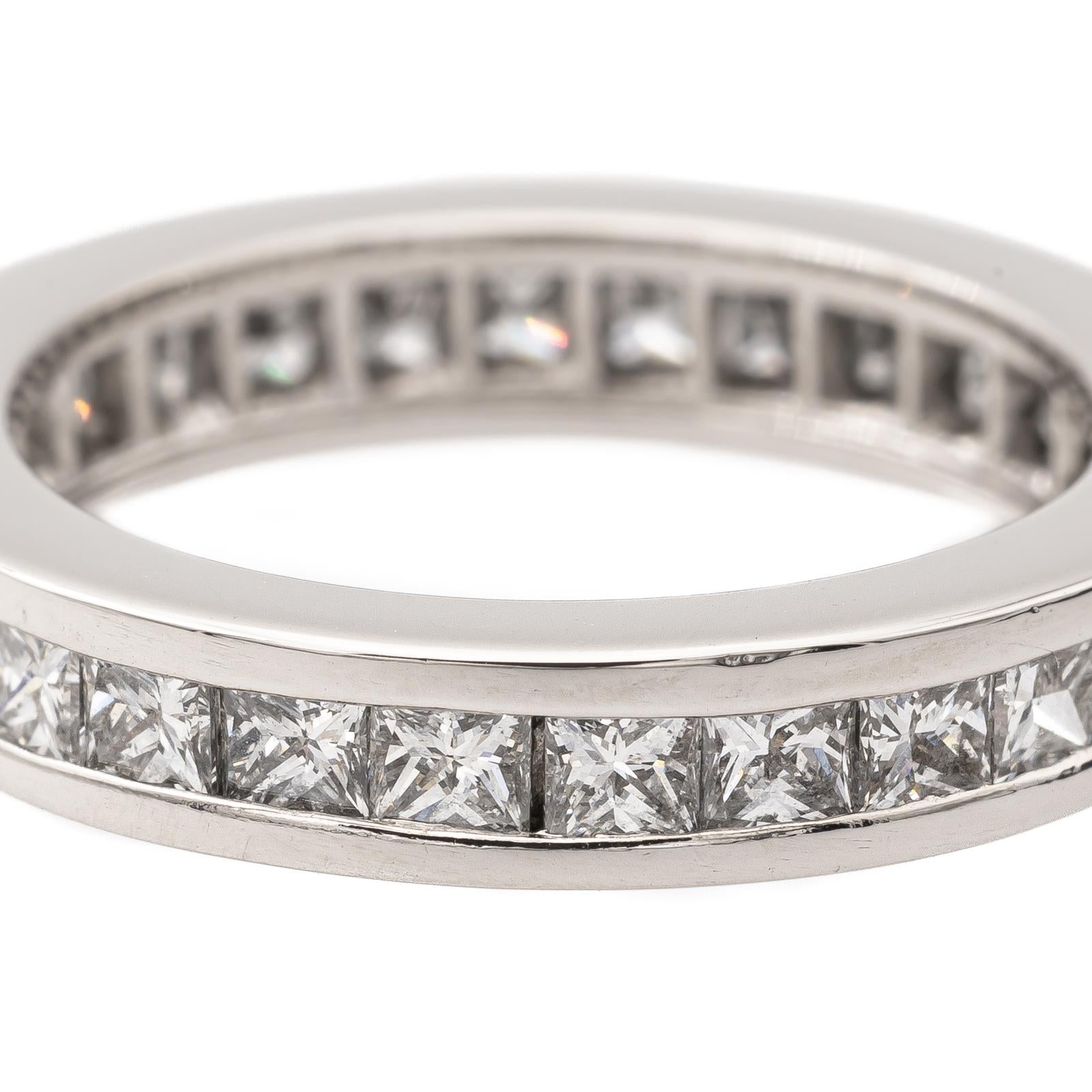 Alliance tour complet en or blanc 750 millièmes (18 carats) dispensé, sertie de 28 diamants taille princesse environ G-VS, d'environ 0,05 ct chacun, poids total diamants: environ 1,4 cts, largeur sur le dessus: 0,38 cm, tour de doigt: 550, poids total: 5,2 g, excellent état