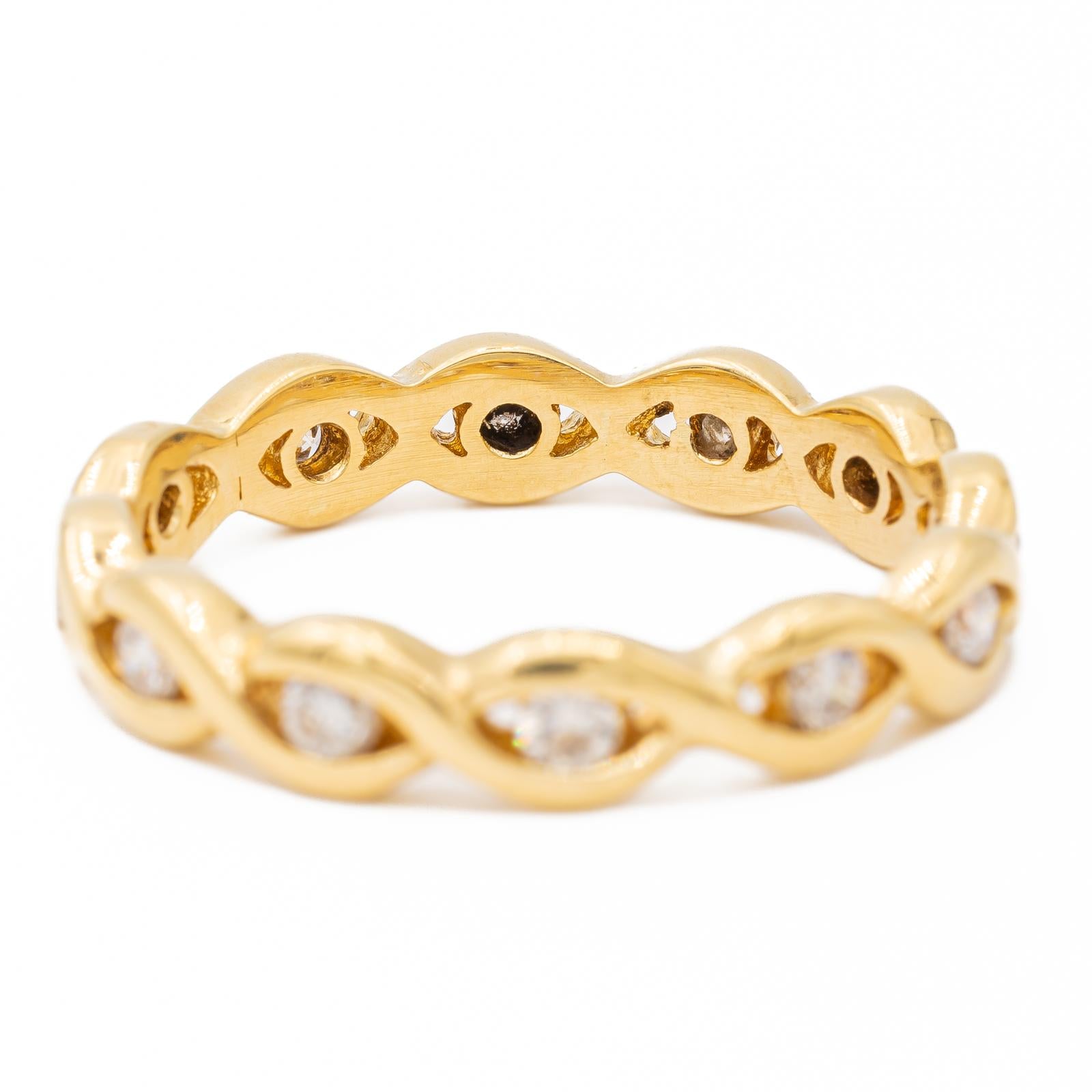 Alliance tour complet en or jaune 750 millièmes (18 carats), sertie de 12 diamants taille brillant environ H/VS, d'environ 0,04 ct chacun, poids total diamants: environ 0,48 ct, largeur sur le dessus: 0,42 cm, tour de doigt: 58, poids total: 4,59 g, poinçon hibou, excellent état