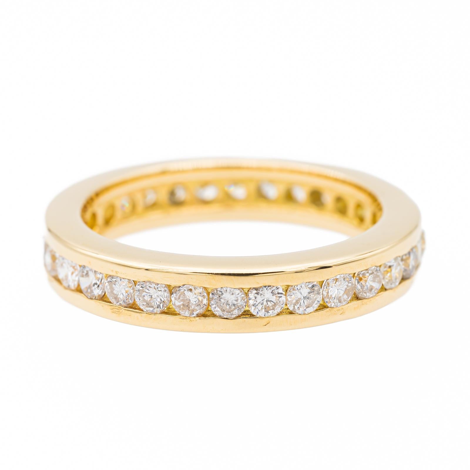 Alliance tour complet en or jaune 750 millièmes (18 carats), sertie de 32 diamants taille brillant environ H/SI, d'environ 0,05 ct chacun, poids total diamants: environ 1,60 cts, largeur sur le dessus: 0,39 cm, tour de doigt: 54, poids total: 6,14 g, poinçon tête d'aigle, excellent état