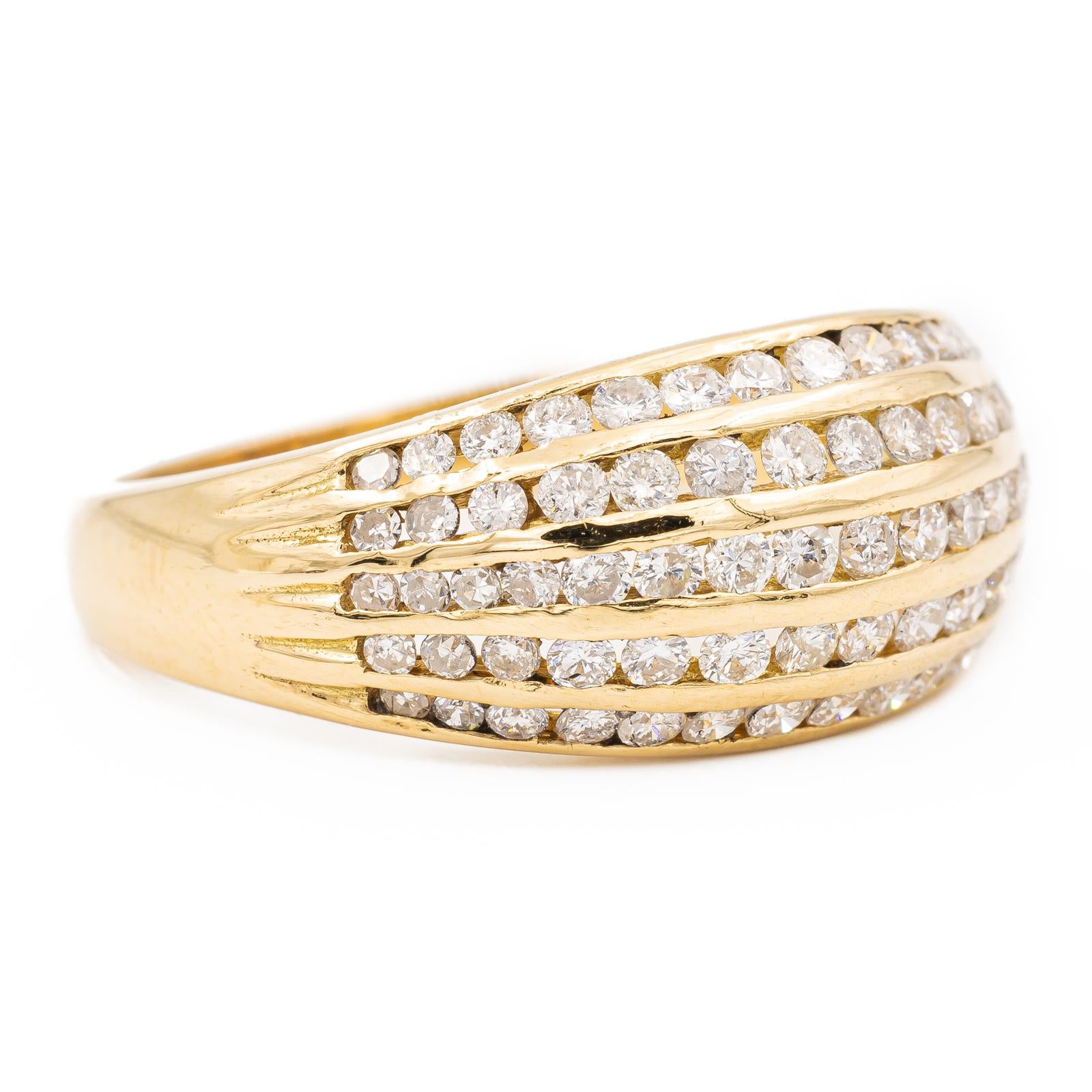 Bague bombée en or jaune 750 millièmes (18 carats), sertie d'un pavage de diamants taille brillant environ H/VS, d'environ 0,01 ct chacun, poids total diamants: environ 0,72 ct, largeur sur le dessus: 0,96 cm, tour de doigt: 58, poids total: 6,02 g, poinçon tête d'aigle, excellent état