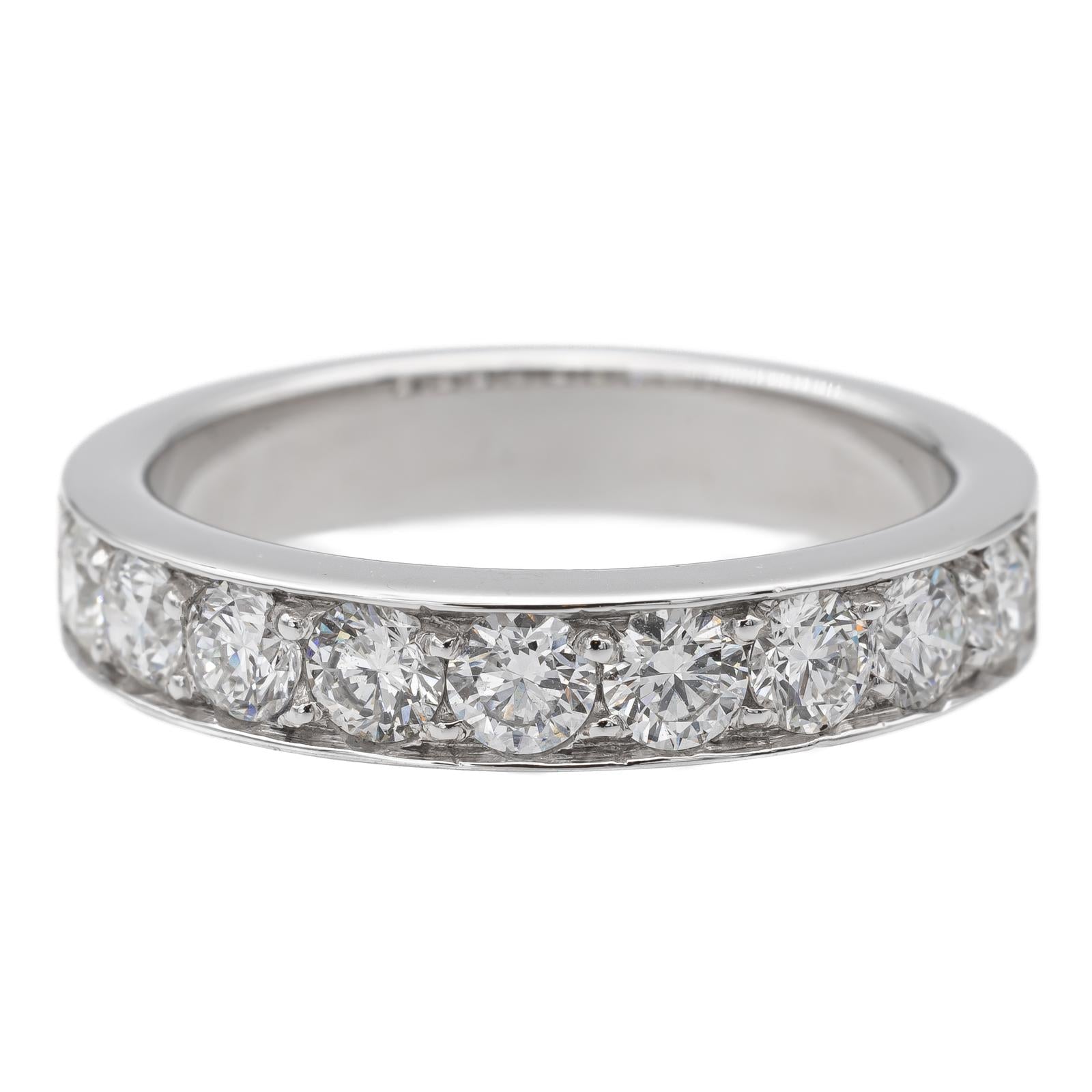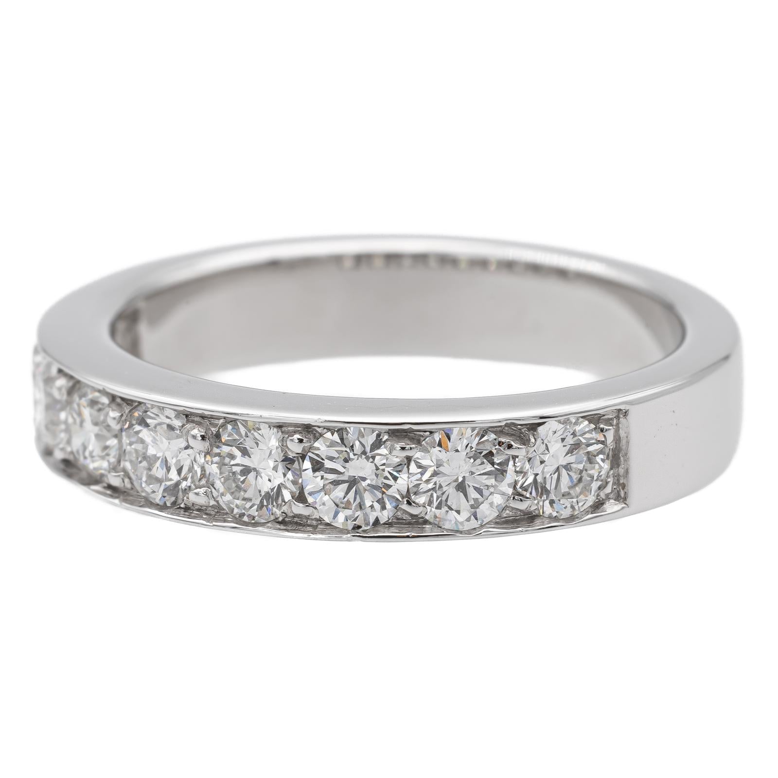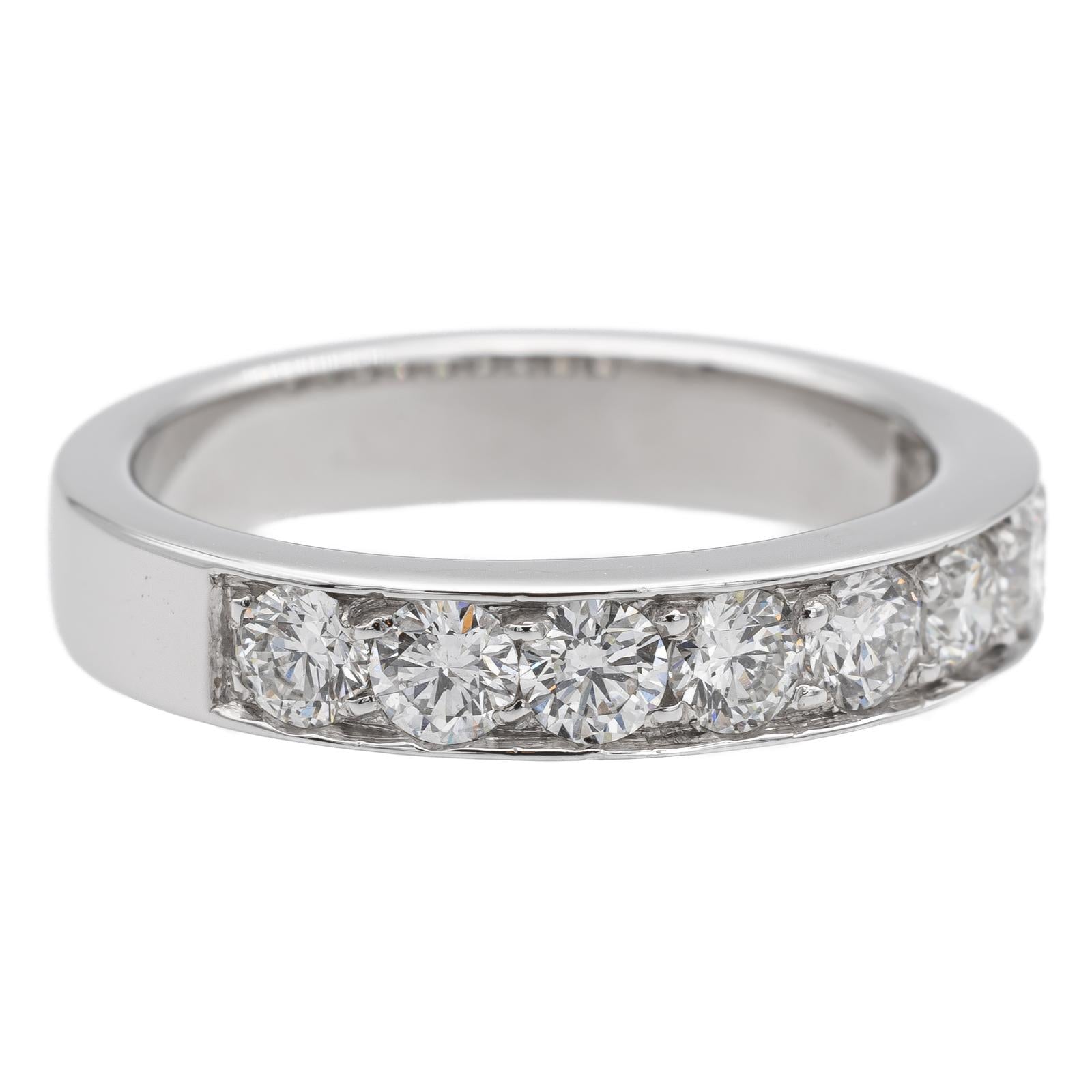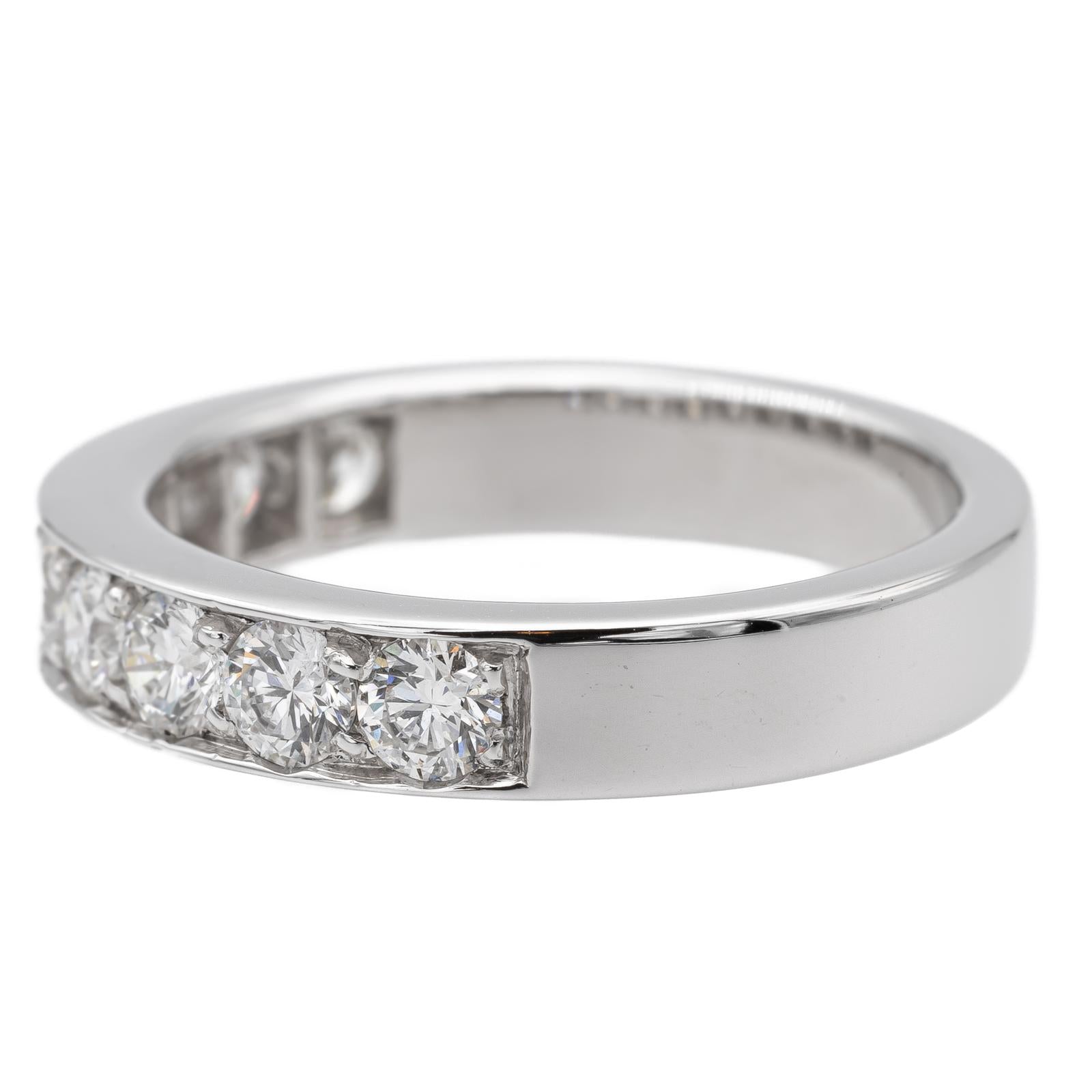 half wedding band in 750 thousandths (18 carat) white gold, set with 9 brilliant-cut F-VS diamonds for a total of 0.99 ct, grain-set, ring size: 53, width: 0.4 cm, total weight: 5 .46 g, eagle's head hallmark, new condition, Visible in Marseille