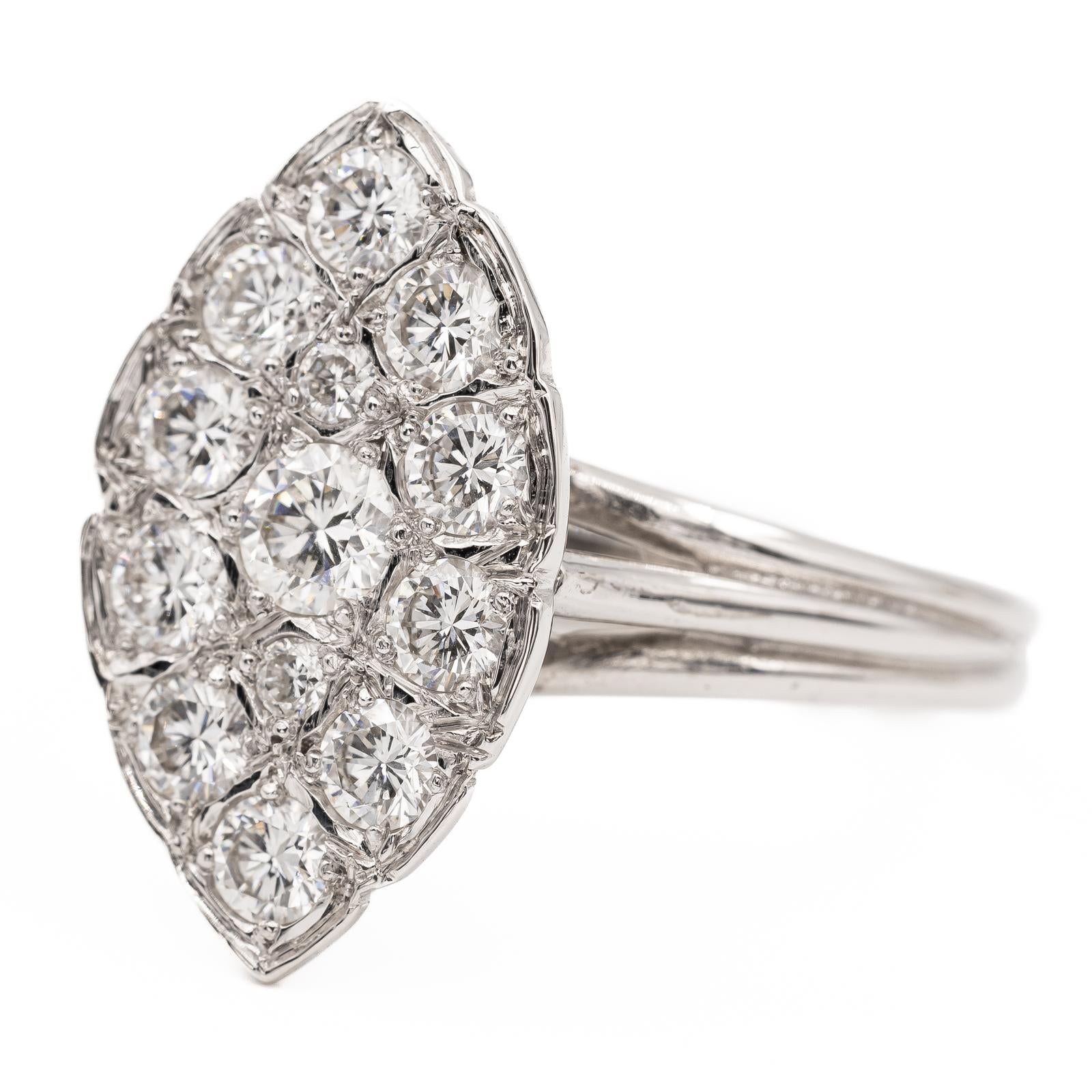 Bague marquise en or blanc 750 millièmes (18 carats), sertie de 13 diamants, estimés H/VS, dont 1 environ 0,25 ct, 2 d'environ 0,03 ct chacun, et 10 d'environ 0,15 ct chacun, Poids total estimé des diamants: 1,81 cts, Tour de doigt: 58, Dimensions du motif: 2,00 x 1,15 cm, Poids total: 6,24 g, Poinçon tête d'aigle, excellent état