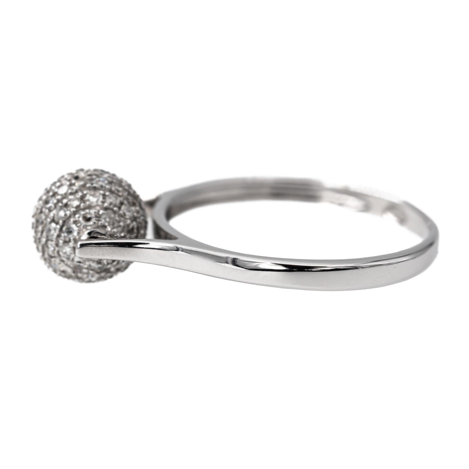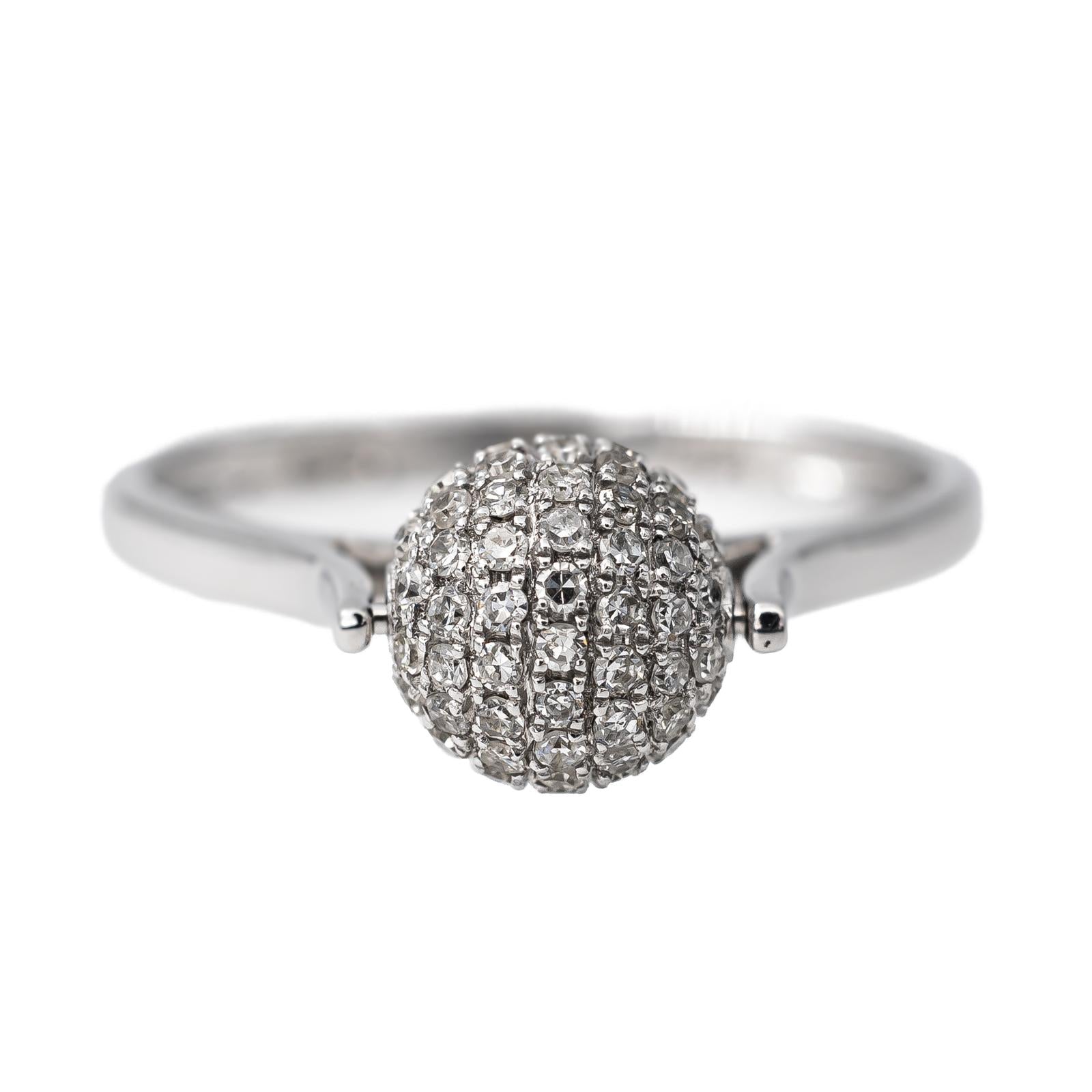 Bague en or blanc 750 millièmes (18 carats) testé, sertie de 96 diamants taille huit/huit, estimés H/SI, d'un poids total d'environ 0,48 ct, (chaque diamant d'un poids d'environ 0,005 ct), la boule est mobile, largeur sur le dessus: 0,68 cm, tour de doigt: 50, poids total: 2,35 g, excellent état