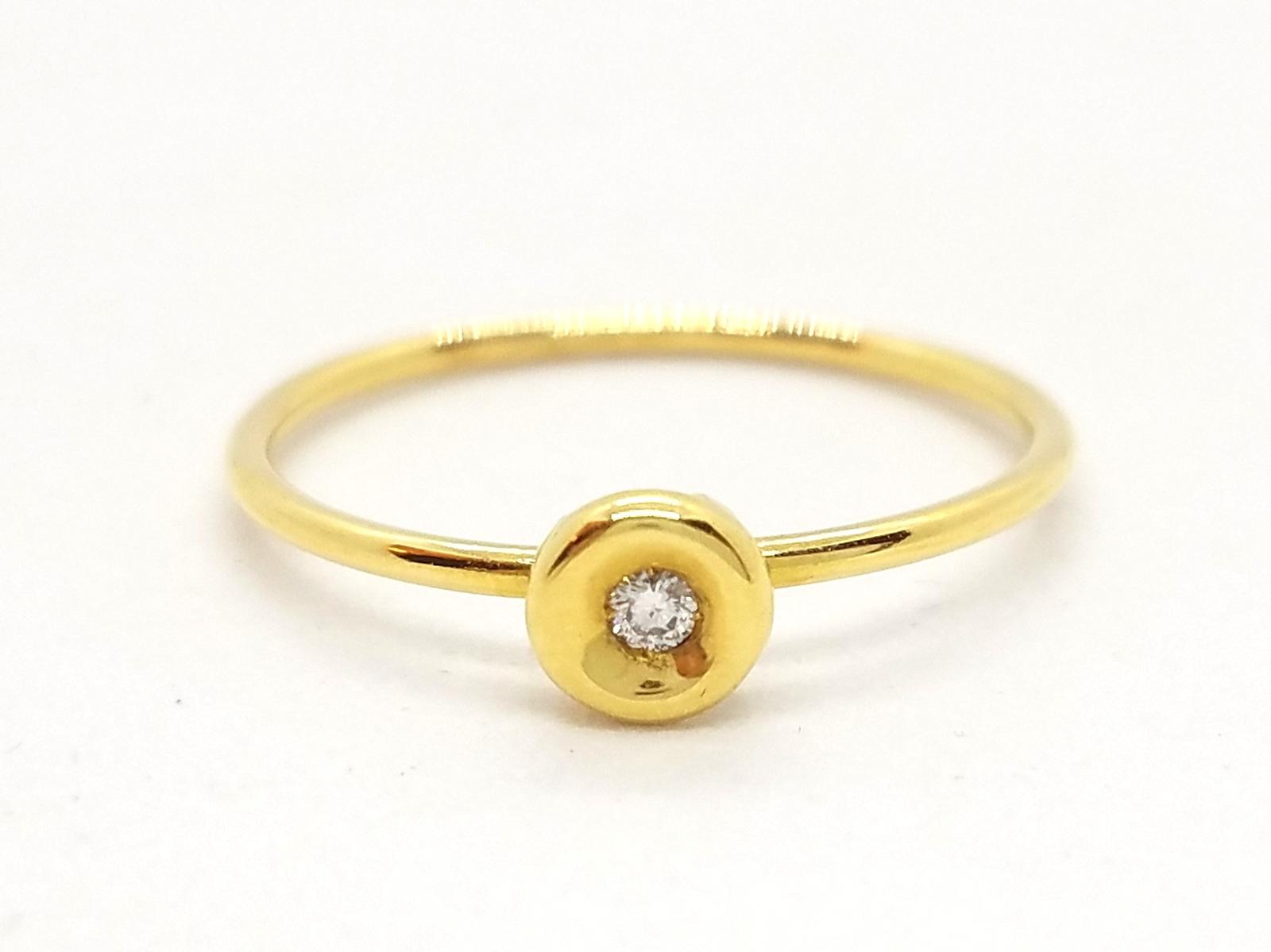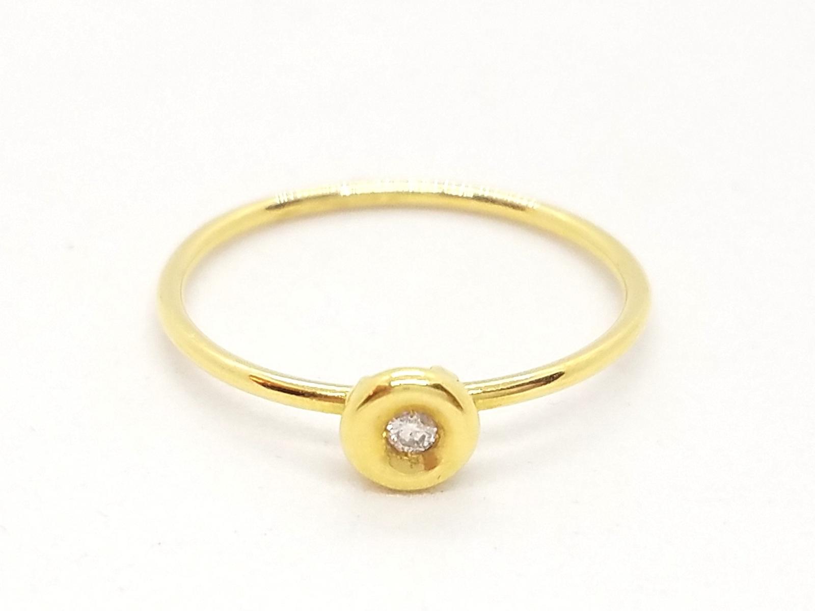 Ring in 750 thousandths (18 carat) yellow gold, round wire, one brilliant cut diamond GH V-SI in a closed setting of 0.03 ct, ring size: 52, diameter of the motif: 0.48 cm, width of the ring: 0.1 cm, total weight: 0.94 g, eagle's head hallmark, new condition, Visible in Nice